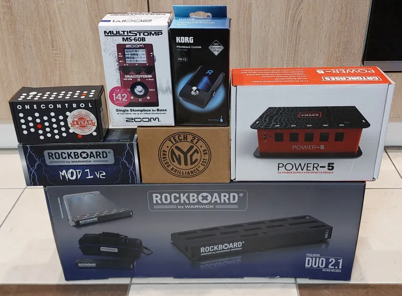 Sziasztok!Eladó a képeken szereplő komplett basszusgitár pedalboard, pedálokkal, kábelekkel, keménytokkal.