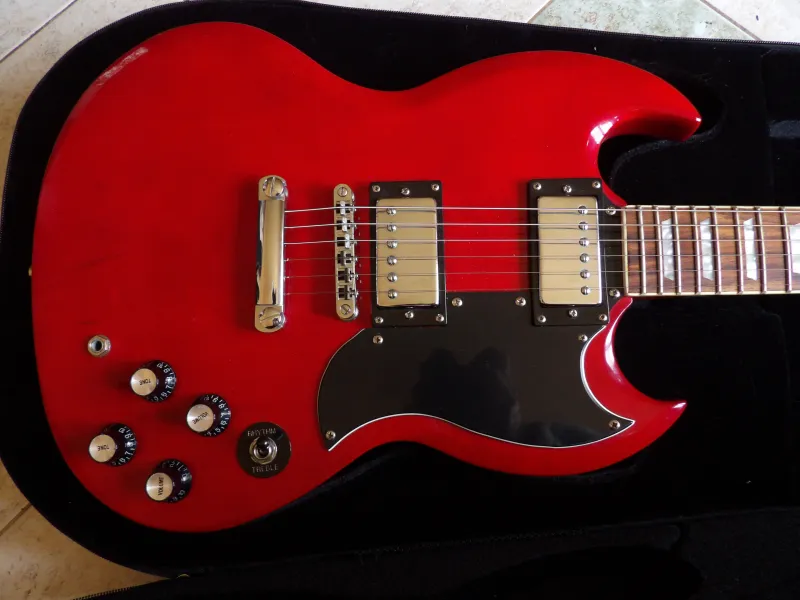 Rocktile SG cserélhető LP-re - teljesen új állapotban.RAGASZTOTT nyakú, klasszikus SG minőséget és hangzást nyújtó gitár-
