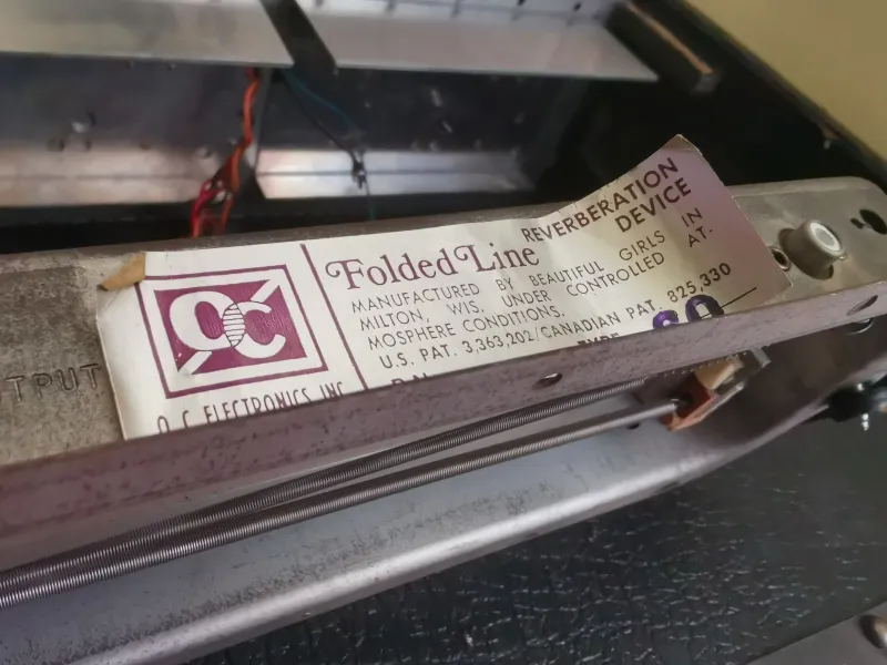 Eredeti alkatrészek, beleértve a hangszórókat és a legendás O.C. Electronics Folded Line rugós zengetőt (˝Manufactured by beautiful girls in Milton˝ címkével)