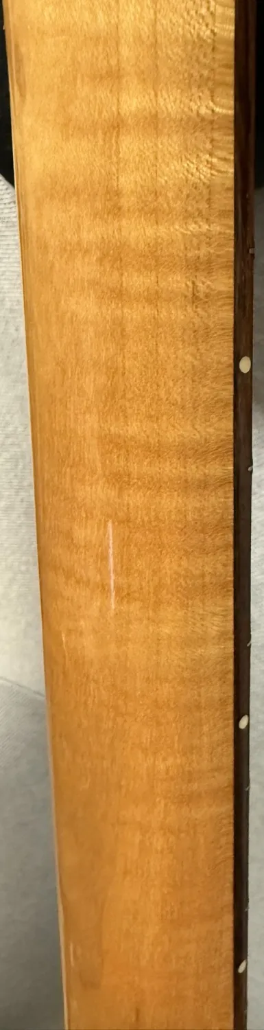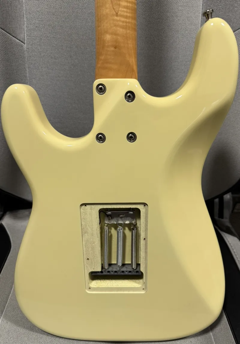 A hangszer kiegyensúlyozott, nyaka kényelmes, gyors, tipikus Sandberg-profil, ráadásul még egy kicsit lángolt rajzolatú is a juhar. A pickupok is rendkívül jól szólnak, komoly Strat hang jön belőle. A klasszikus vintage white szín gyönyörű rózsafa fogólappal - ütős kombináció. Az egyedi tremoló szuper minőség, kellemesen használható.