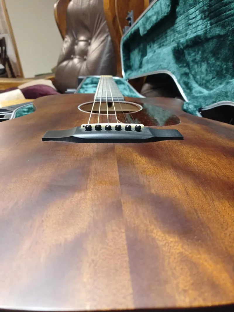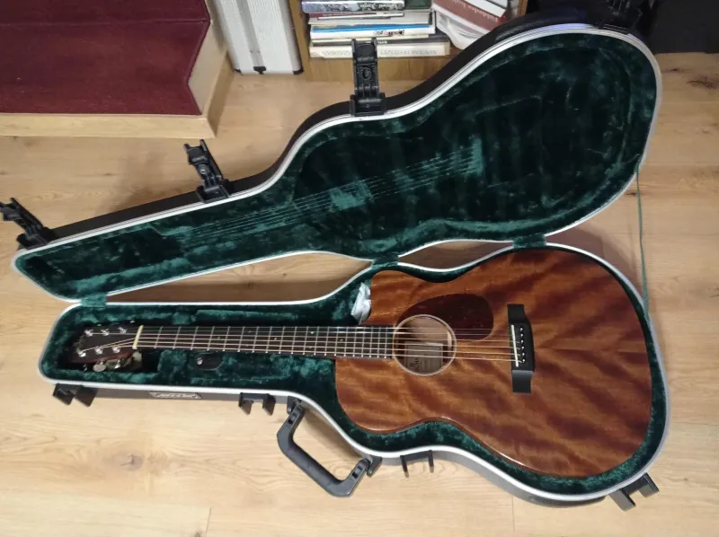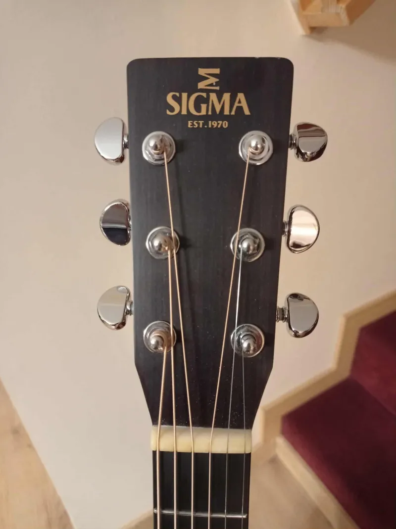 Eladó egy Sigma 000-testű elektroakkusztikus gitár és egy hozzá tartozó keménytok, lehetőleg egyben. Antikolt selyemfényű mahagóni fedlap, hát és oldallap, nyak. Grover króm kulcsok, Fishman Presys II elektronika (hangolóval).Jelenleg 10-47-es Elixir Nanoweb Phosphor Bronze húrokkal, beállítva.