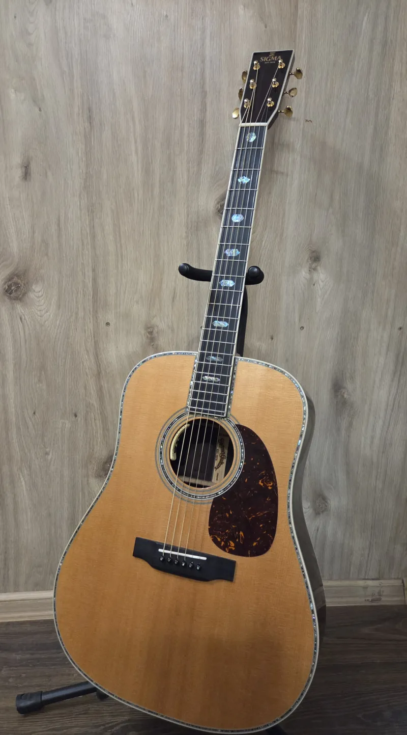 Sigma SDR-45 country gitár, beépített L.R.Baggs Anthem hangszedő rendszerrel, formatokkal, tökéletesen beállítva eladó. A márka egyik csúcskategóriás modellje. Tömör fenyő tető, tömör keletindiai rózsafa oldalak és hátlap. Csere nem érdekel.Connected review