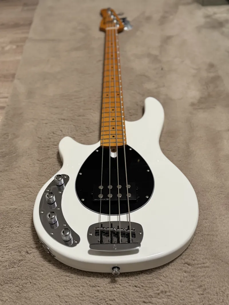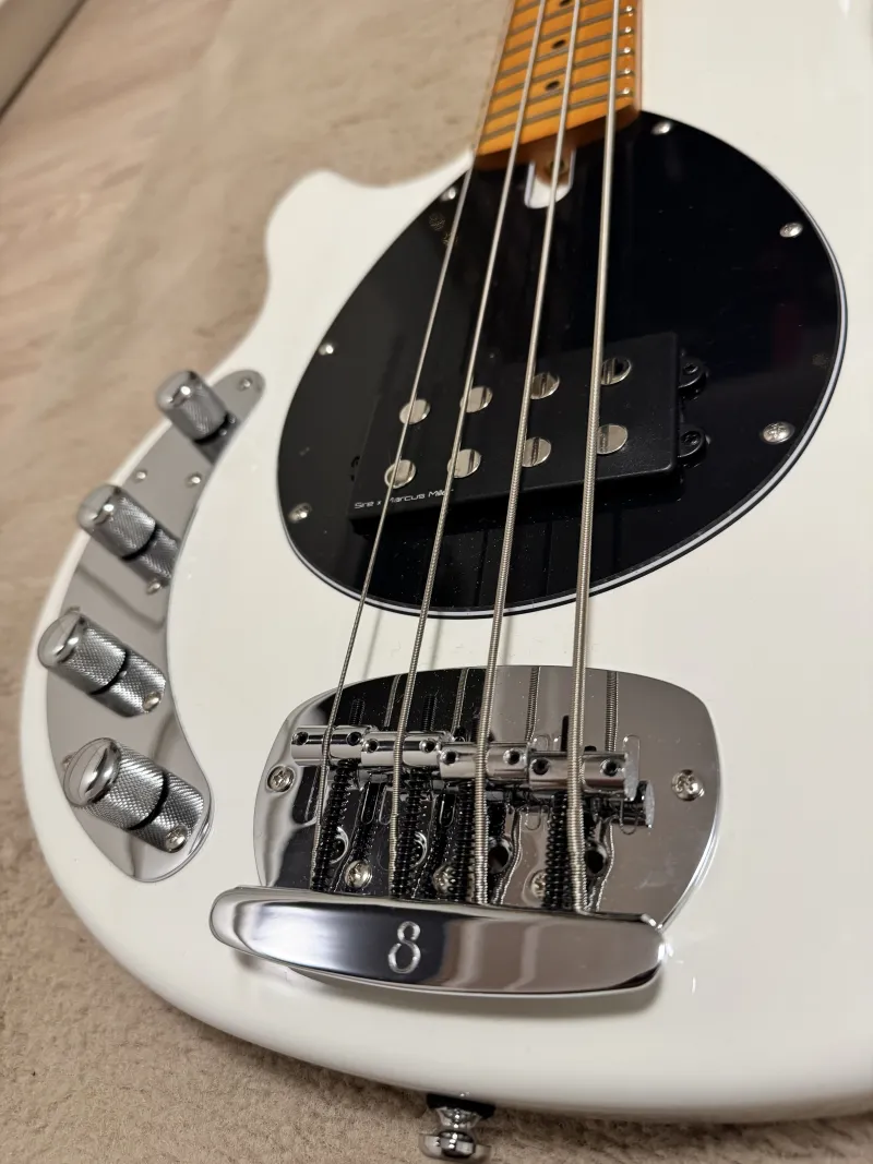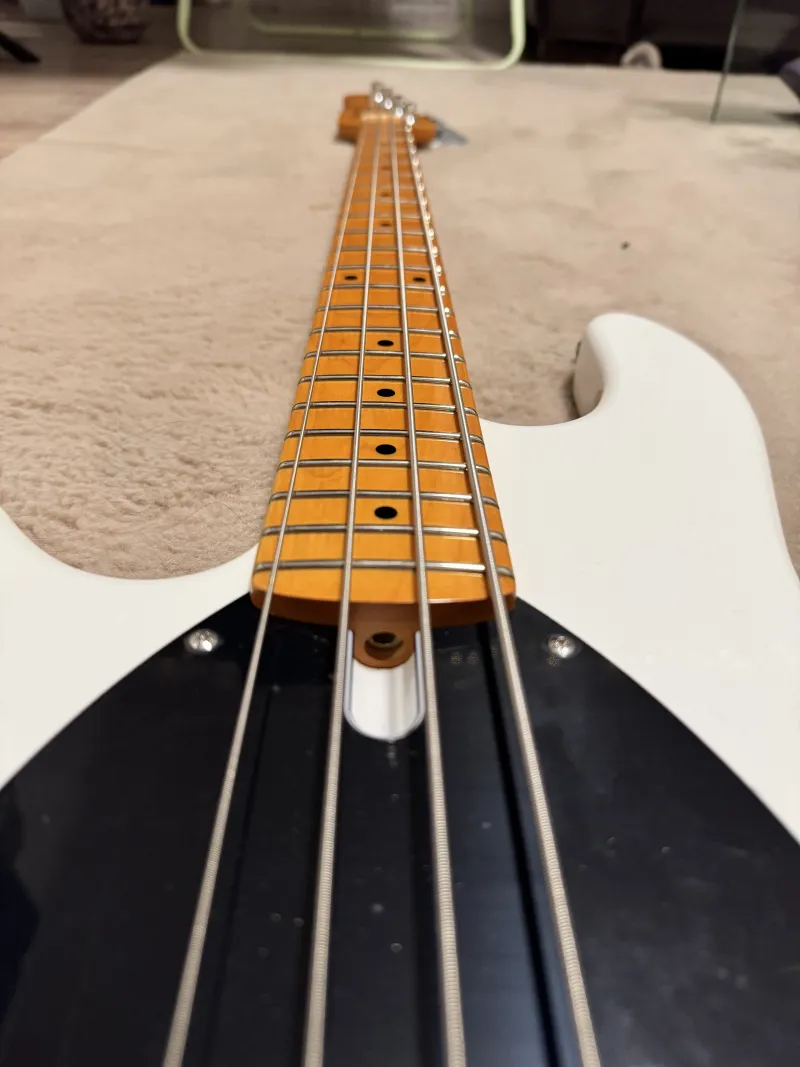 Új Ernie Ball Super Slinky 45-100-as húrokkal.