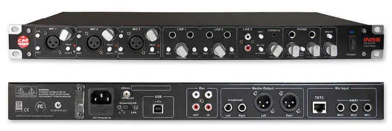 The card has 3 phantom-capable microphone inputs (jack on the back) (expandable to 6 with TST 3 switch) and 4 stereo line inputs (2x2 mono 6.3 jack, 2x1 RCA and 1x 3.5 stereo jack connector). It is also suitable for mixing and digitizing. It's very good for home studios, I used it there too. The only flaw is a few minimal surface scratches on top.