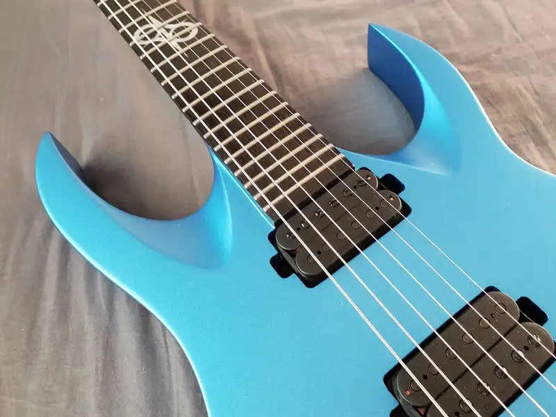 The instrument is not only beautiful but also incredibly comfortable. The neck profile is mostly a flat C/D shape, providing a fast but thick sound. The body is mahogany, the neck is maple, and the fretboard is ebony. Unfortunately, I cannot upload a sound sample because the site will block the ad... :( but I'm happy to send you the little snippet I recorded in the half hour it was in my hands upon request.