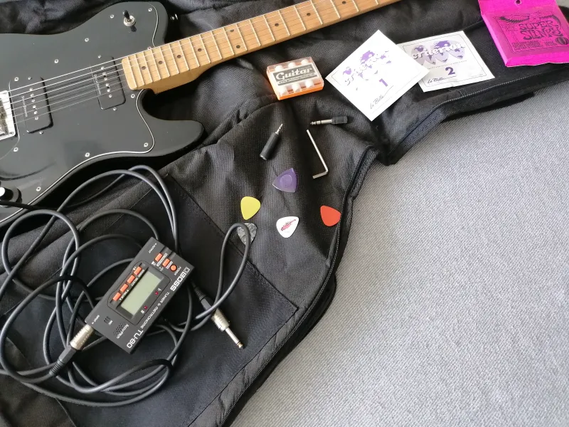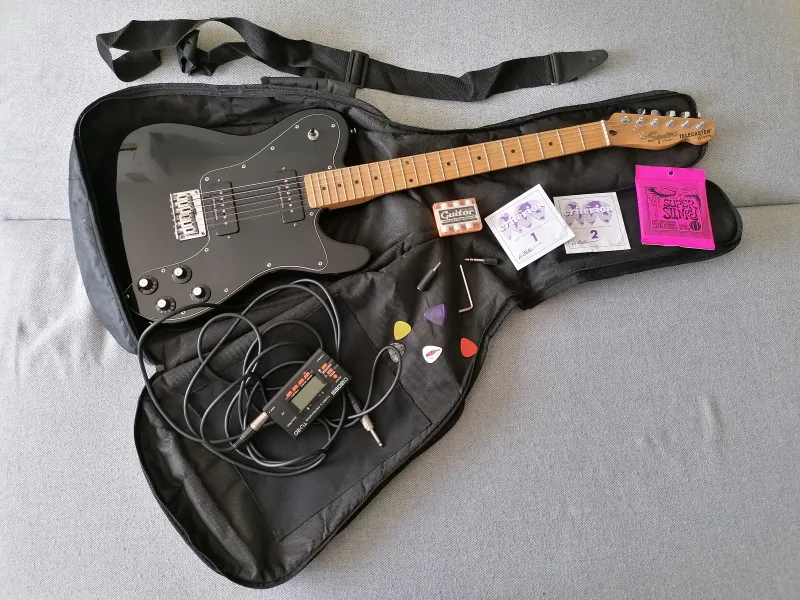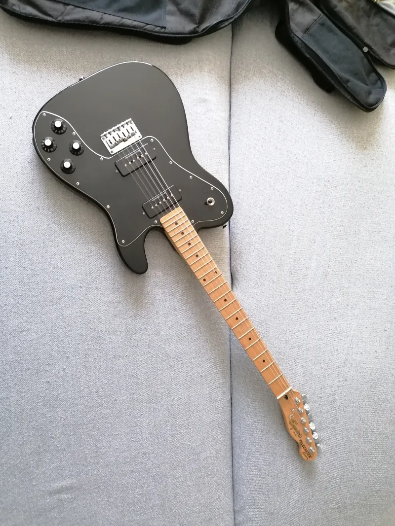 Eladó Squier Telecaster Deluxom. Indonéz gyártmány, évek óta nem használom már sajnos, úgyhogy egy beállítás ráférne már.Minden kiegésztő cuccot adok hozzá. Az árban benne van a tok, kábel, jack átalakítók, hangológép, heveder, néhány pengető és egy pakk új húr is.