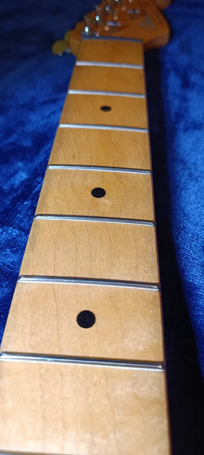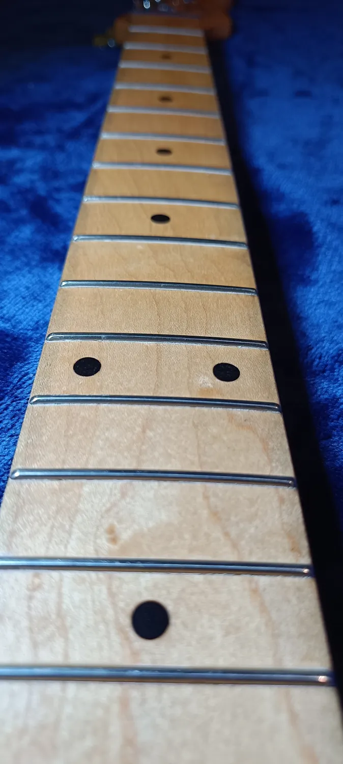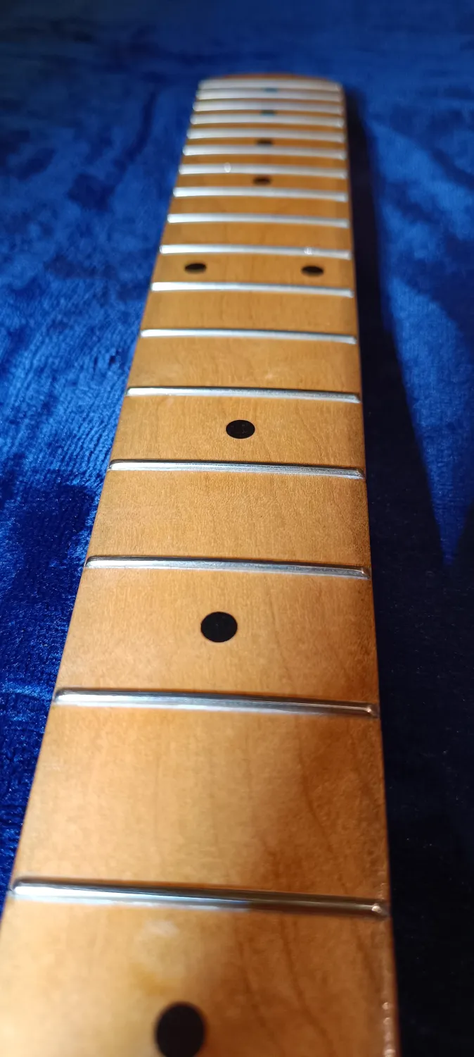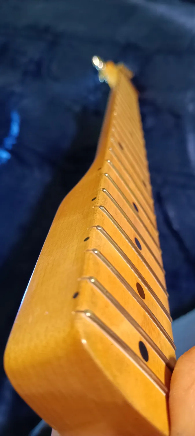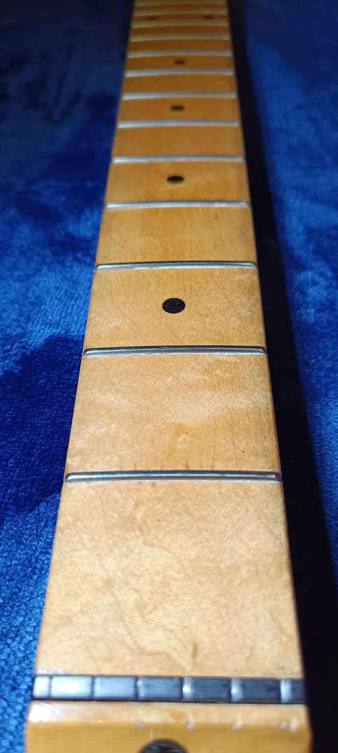 Üdvözletem Mindenkinek! 1989-es koreai, egy darabos jávor nyak eladó a képeken látható szép állapotban. Fél éve kapott új Jescar vintage bundokat, graphtech tusq nyerget. Pálca, Gotoh kulcsok tökéletesen működnek. Előre utalás esetén GLS az árban benne van Magyarország területén vagy személyesen átvehető.Shipping