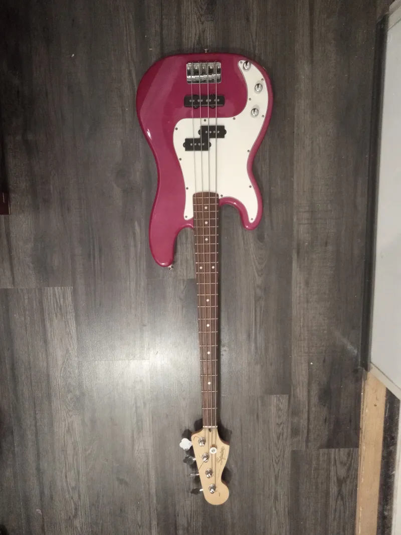 Szeretném eladni a még régen ajándékba kapott basszusgitáromat kihasználatlanság miatt. Egy Squier Standard P-Bass Special balkezes verziója, Galactic Purple színben. Ezt a verziót Indonéziában gyártották 1999 és 2001 között. Kulccsal zárható keménytokkal együtt jön.