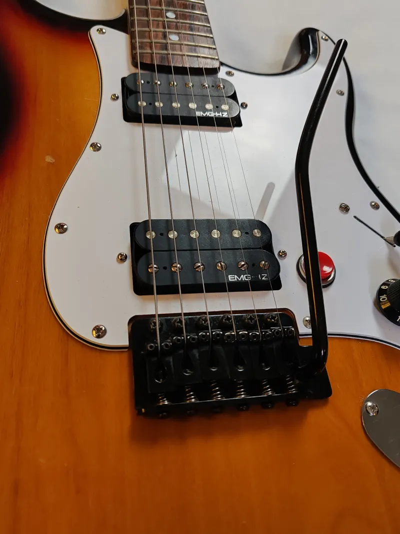 Elektronika: EMG HZ TB-1 (híd), SA-1 (nyak) szett - koreai piacra készült, felezhető EMG-szett, még nem quik-connect, ugyanakkor a push-pull hangszínpotinak köszönhetően összesen 6 hangszínt tud a gitár, tehát a csilingelő single coil hangzástól a metálos riffekig kb. bármire használható. A killswitch poti jelenleg nincs bekötve.