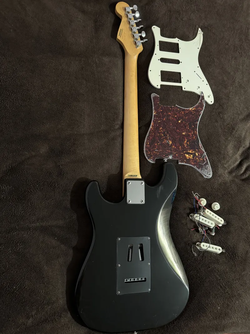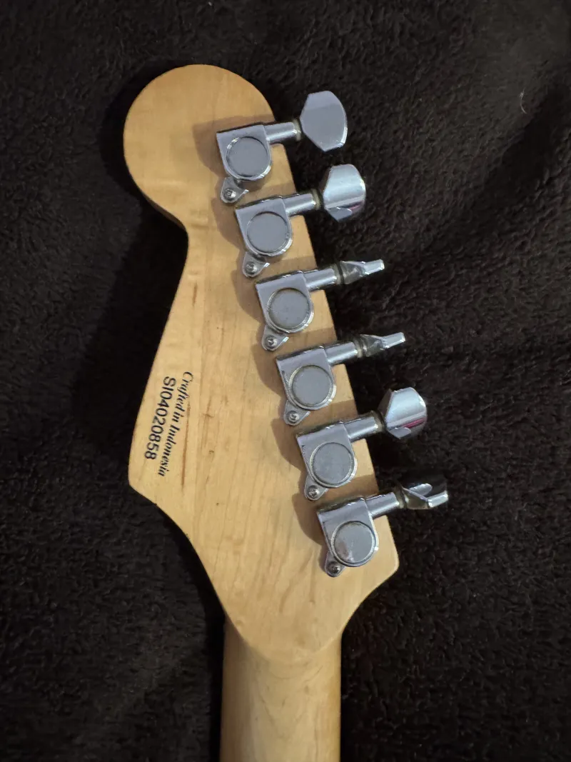 Helló!Amolyan projekt hangszernek használtam, hangszedőket tesztelni. 2004-es indonéz gyártmány. Az eredeti koptatót szétbarmoltam, az van rajta, de adok hozzá ajiba két vatta új koptatót. Eredeti hardverek megvannak. Nincs igazán leharcolva, repedve, törve, csavarodva, stb. Alapvetően nem rossz kis hangszer kezdésre, vagy akár komolyabbra. Nincs időm/energiám már vele foglalkozni, csak a helyet foglalja.