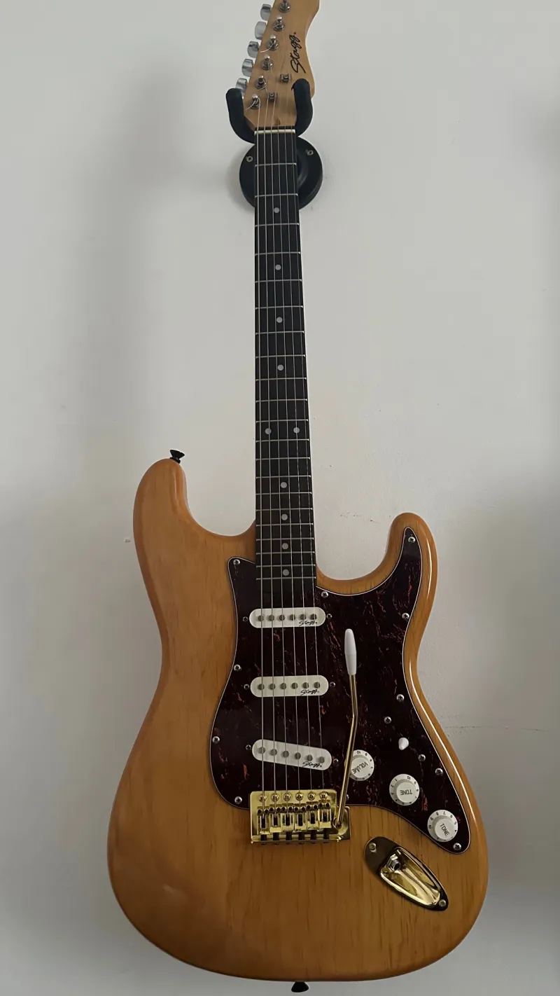 Eladó kihasználatlanság miatt egy Stagg 700 típusú belépő kategóriás gitár. Kicseréltem a hátsó húrlábat + tremoló kart arany színűre + Jack csatlakozót (nekem így jobban tetszett). :) A gitáron (húrmagasságon) érdemes állítgatni a kényelmes játékhoz én már nem akartam ezzel foglalkozni. Earnie Ball 10-es (új) húr van rajta. Sérülés / karcmentes. Az ár nem alkuképes, csere nem érdekel.Connected review