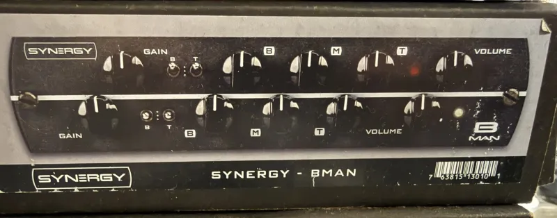 Eladóvá vált Synergy BMAN modulom.A legendás Fender Bassman Synergy-adaptációja. Elég rugalmas modul: a két csatorna külön EQ-val, Gainnel és Volume-mal rendelkezik, plusz mindkét csatornán Tight és Bright kapcsolókkal finomítható a feszesség és magaskarakter. A szelídtől a brutálisig megy a két csatorna között, tehát messze túlmutat az eredeti erősítő lehetőségein, de a tradicionális hangot is kiválóan tudja.