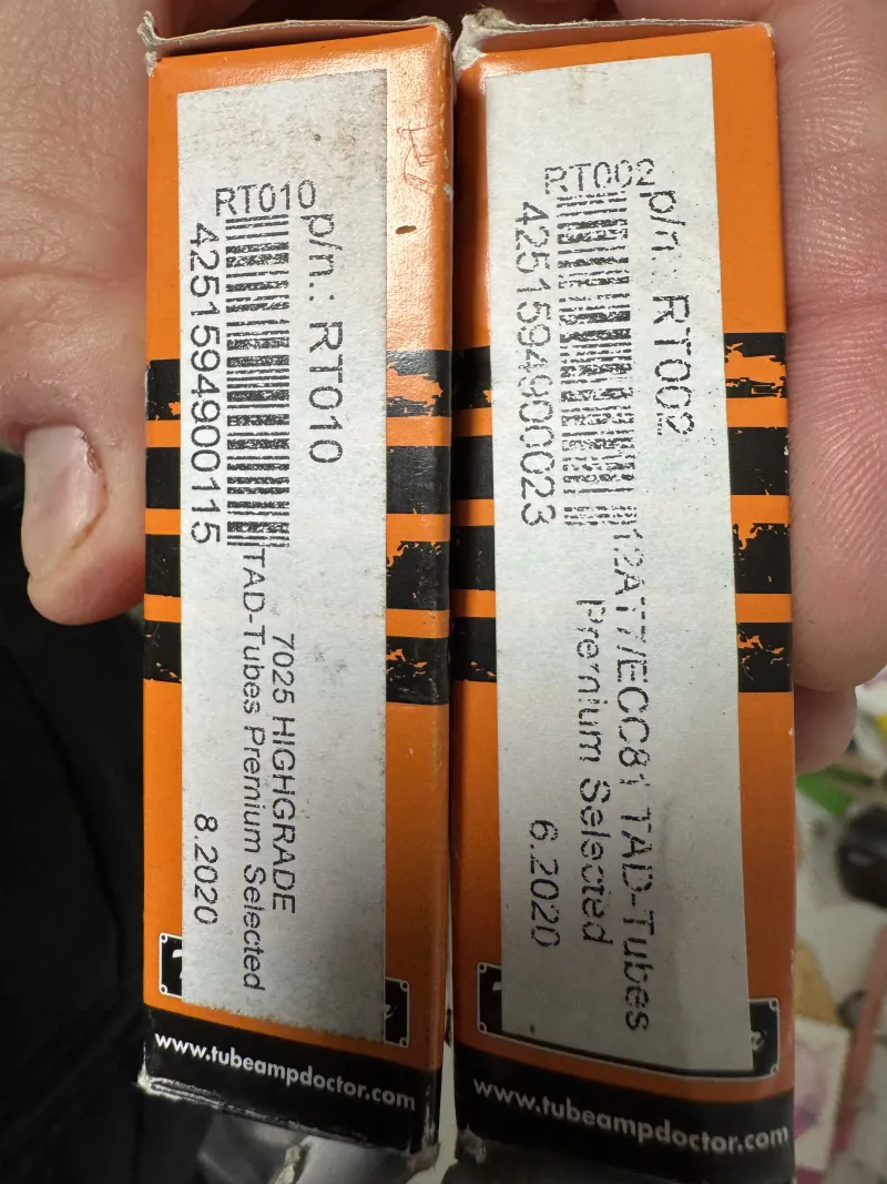 Eladó: TAD 6V6GT-CZ válogatott végfokcső pár (ÚJ)Eladó egy Tube Amp Doctor (TAD) 6V6GT-CZ matched pair végfokcső-szett.