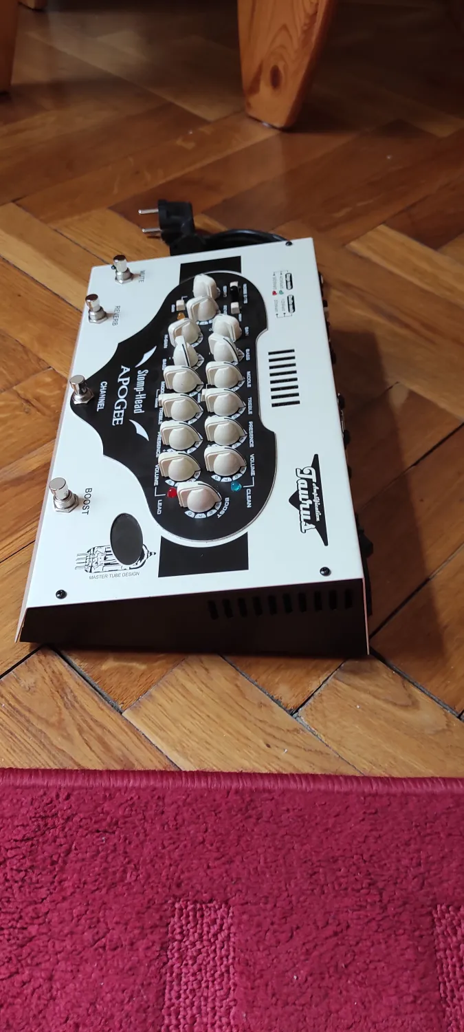 Eladó ez a csöves analóg gitár erősítő fej 90 W-os.Taposó formában,mute-reverb-high gain-boost kapcsolókkal.A tiszta csatornához lehet keverni chrunchot,a high gain a torzítót aktiválja.A reverb spring reverbhez hasonló , egész jó .