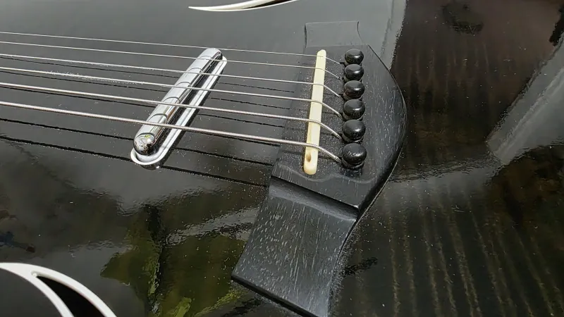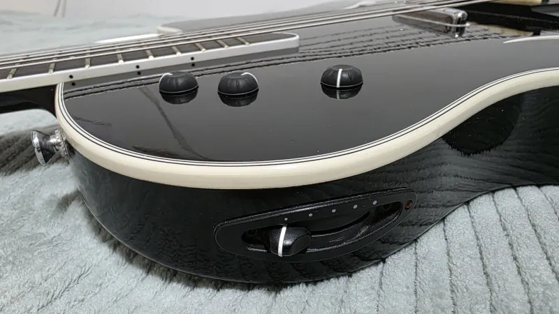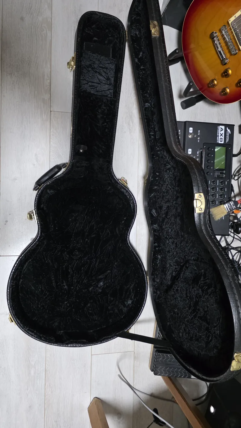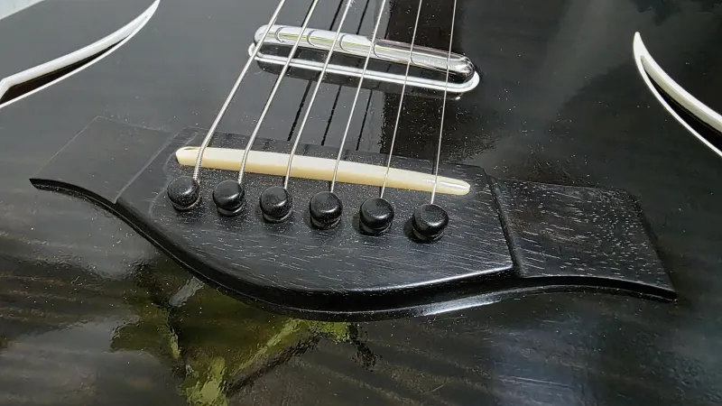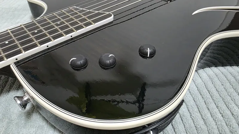 - Vékony, teljesen üreges (hollowbody) test, f-lyukakkal