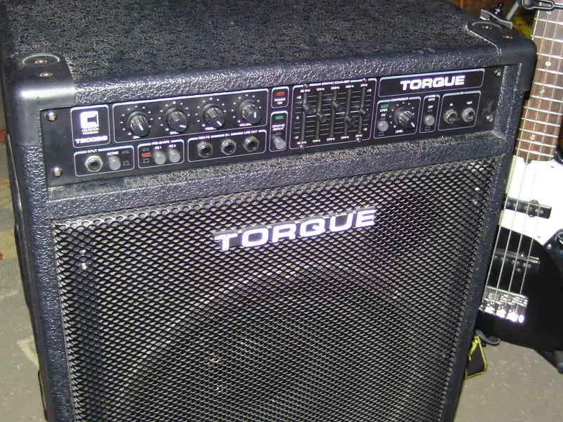 5-band EQ, active-passive switch, treble-bass boost, 15" Celestion speaker, compressor, noise gate, and 200 watts of power.