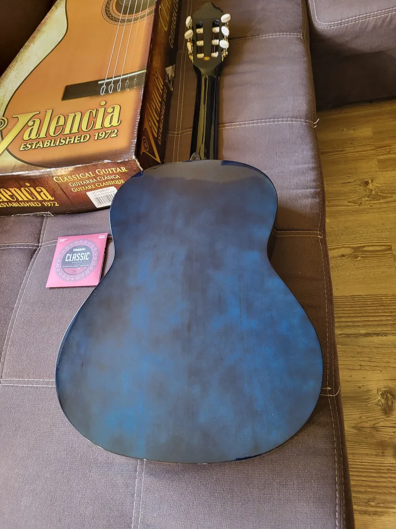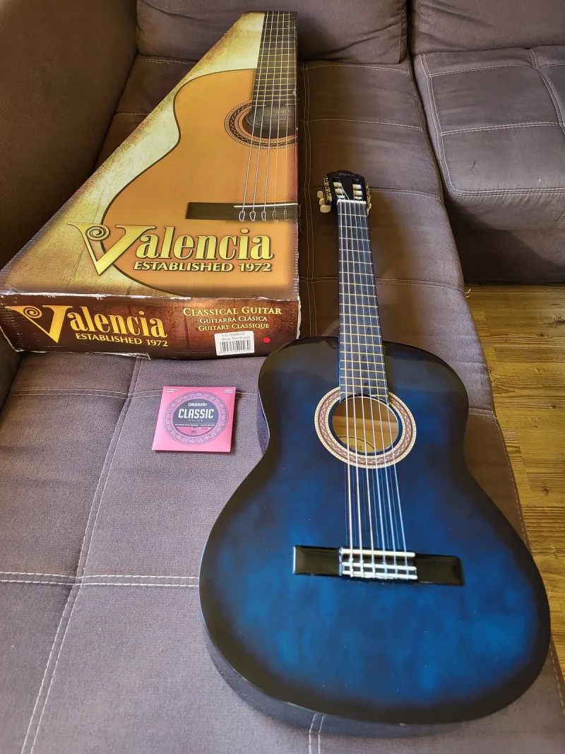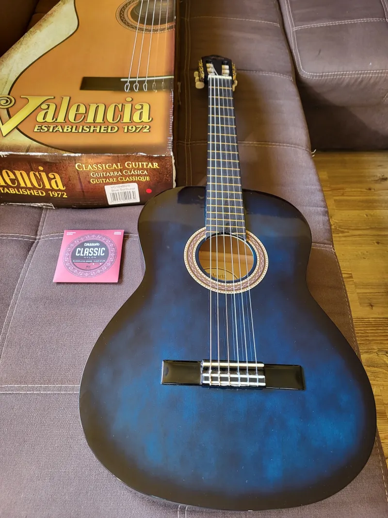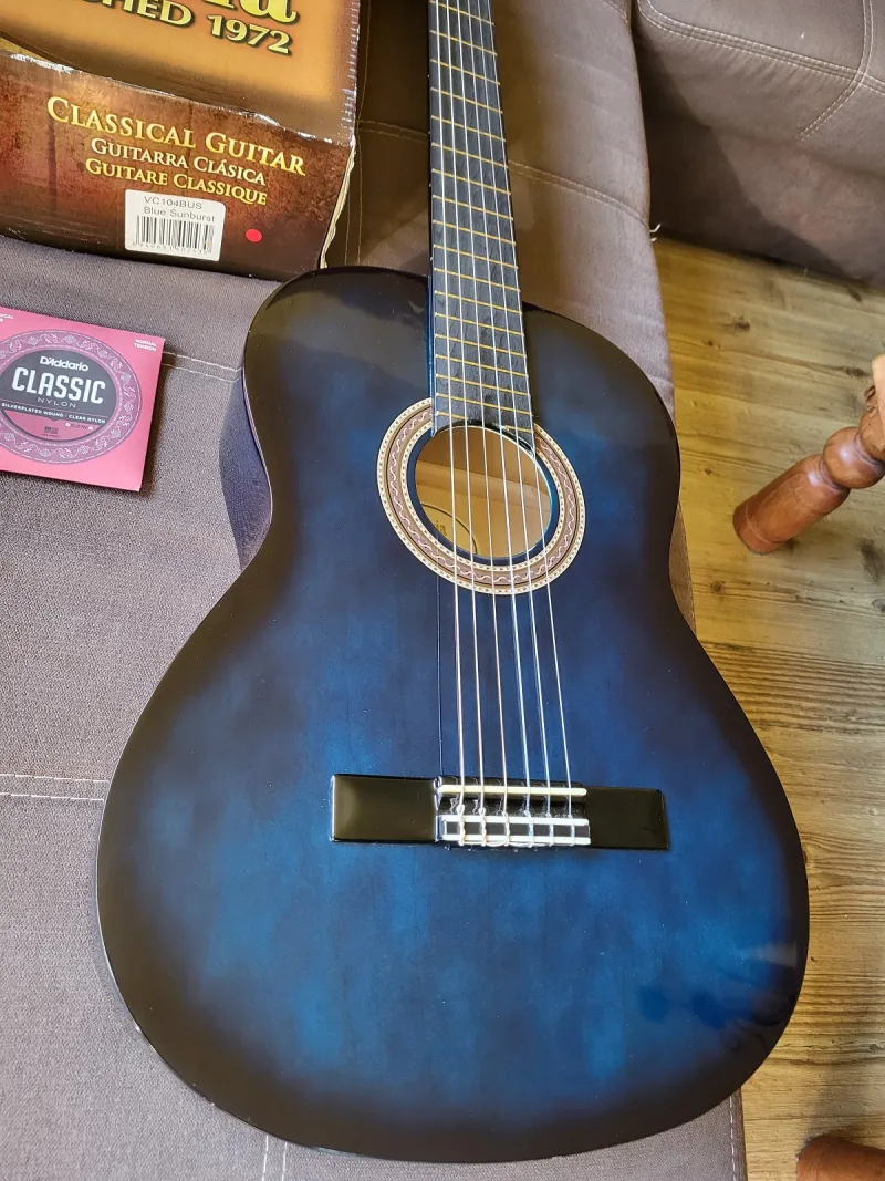 Eladó egy Valencia VC104BUS Blue Sunburst klasszikus gitár, beszámításból került hozzám, egy két nagyon apró szinte észrevehetetlen hajszálkarctól eltekintve új állapotban, gyári dobozában van. Adok hozzá ajándékba egy vadonatúj minőségi D`Addario húrkészletet is (képeken látható).Connected review