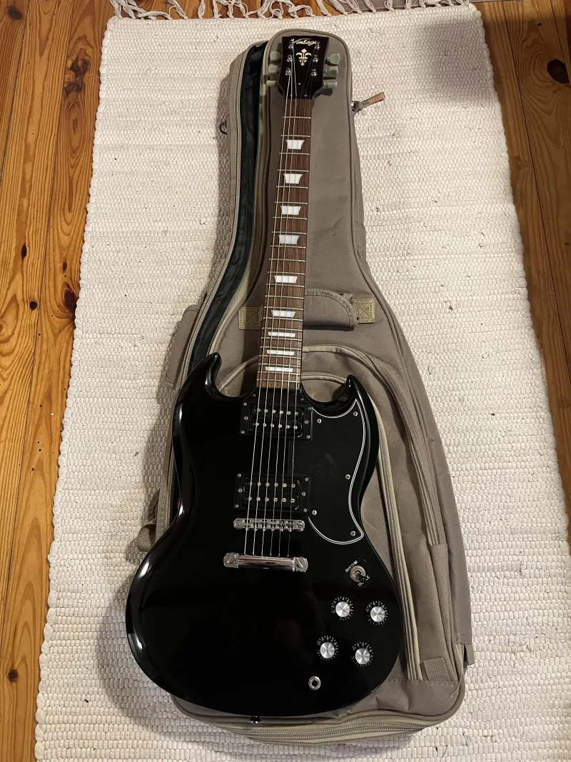 Sziasztok!Eladó első szériás Vintage SG. Benne Bare Knuckle szett. Az elektronika szintén cserélve cts potik stb. A pótméter gombok cserélve lettek Gibsonra . Az eredeti Wilkinson pickup szett és eredeti poti gombok szintén járnak hozzá plussz a képen látható warvick Rockbag.