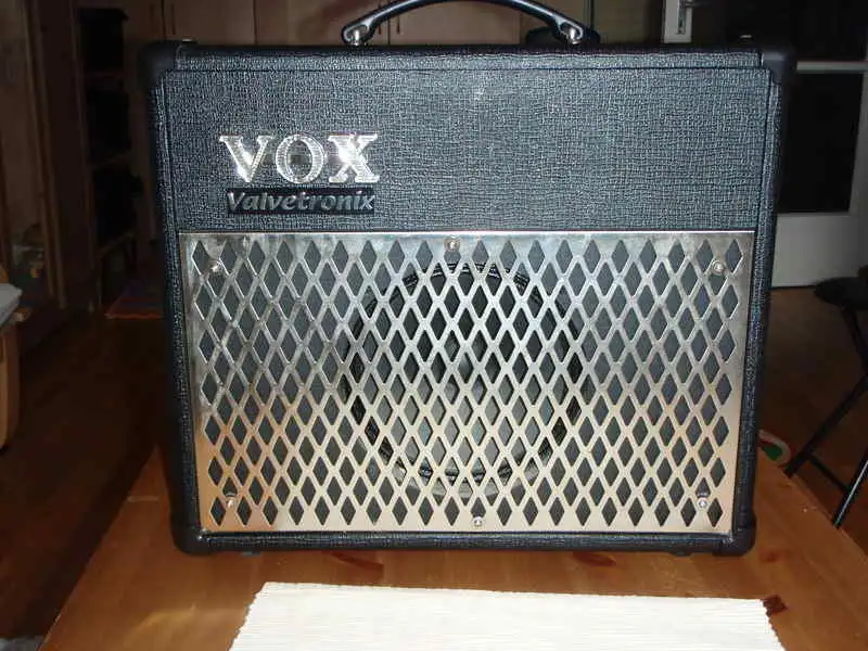 Vox AD15VT guitar combo. Robustly built, its sound is thick like a mammoth's... It's supposedly a modeling gadget, but among those that I've had, this one sounds the best. Perfect condition inside and out. It has a lot of parameterizable effects, 11 amp models. You can mix and match all of this and save it in the end. Preamp tubes. A very compact little thing. Completely usable. Take it before I decide to keep it. Price: 25,000 Ft