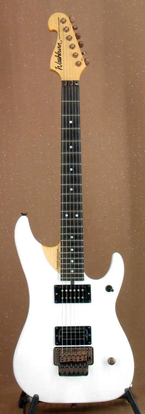 huendeskesWashburn N4 Custom Shop electric guitar. With Aged Copper hardware. Comes with an additional Aged Copper tremolo! Original metal case included!