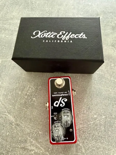 Xotic SP Comressor Limited Edition - igazi csemege. Egy nagyon szépen szóló, könnyen kezelhető comressor pedál, igazán board barát minikivitelben. Boostolásra is jó. Igazi butik minőség. Ráadásul ez egy limitált kiadás a szép piros színével. A tetején lévő potmétereken belül a ház belseje számos további hangszínbeállítást / paraméterezési lehetőséget rejt. Nagyon szép, megkímélt állapotban, dobozával, papírjaival.Shipping