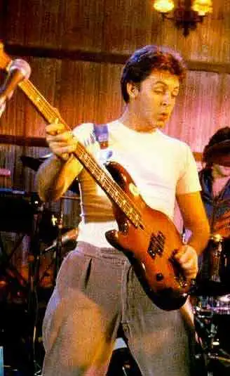 huendeskes 1979 YAMAHA BB1200 neck-through bass guitar with original hard case for sale. Paul McCartney played exactly this model in Wings for a while (from '79 to the early '80s). Made in Japan. (Rózsi Demjén also had a similar one in VMoto-Rock, but I think it also had a JB pickup at the bridge.)