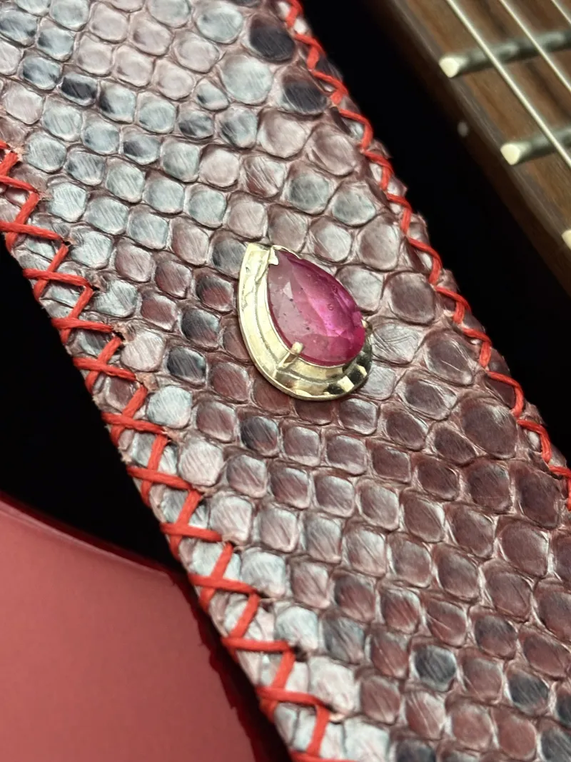 * Heveder: valódi piton- és viperabőrből készült, masszív ezüst foglalattal, melyben egy 6 ct-os természetes rubin ékaskedik
