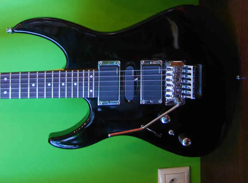 1994 model with EMG 81-SA-85 pickups, Floyd Rose bridge, new 9-gauge Elixir strings, set up.