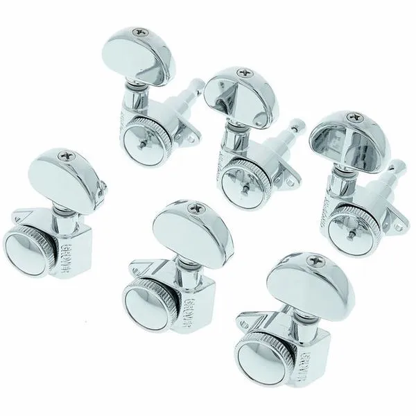 Machine heads Set For Electric Guitar Locking tuners Closed 3 x Right 3 x Left Mounting diameter: 9.6 mm Finish: Chrome 30 30-Day Money-Back Guarantee 3 3-Year Thomann Warranty Available since October 2009 Item number 236707 Sales Unit 1 piece(s) Colour Chrome Locking Yes Design Modern
