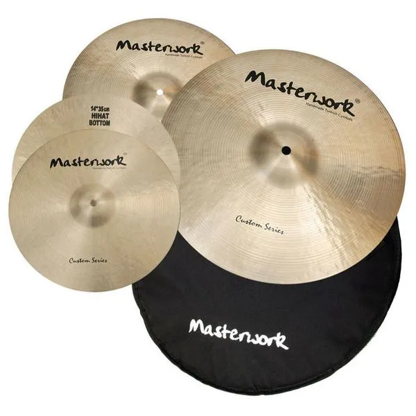 Cymbal Set Masterwork Custom Series Manufactured according to Turkish tradition entirely by hand Traditional finish Material: B-25 bronze alloy All-round cymbal set Broad frequency range and a warm basic character with sensitive dynamic characteristics Consists of: 14 Hi-hat 16 Crash 20 Ride Bag 30 30-Day Money-Back Guarantee Available since July 2007 Item number 111787 Sales Unit 1 piece(s) Configurations 1x Hi-Hat, 1x Ride, 1x Crash Inc.Cymbal Bag Case Yes Alloy B25