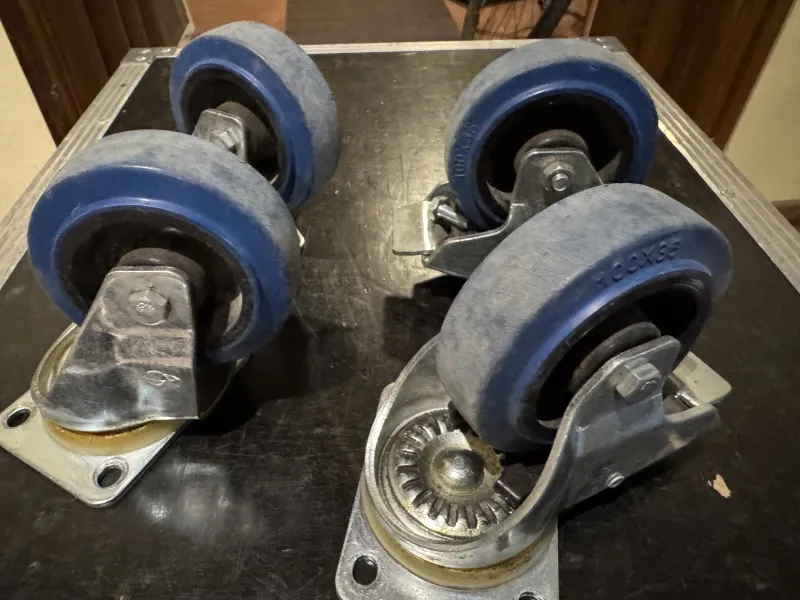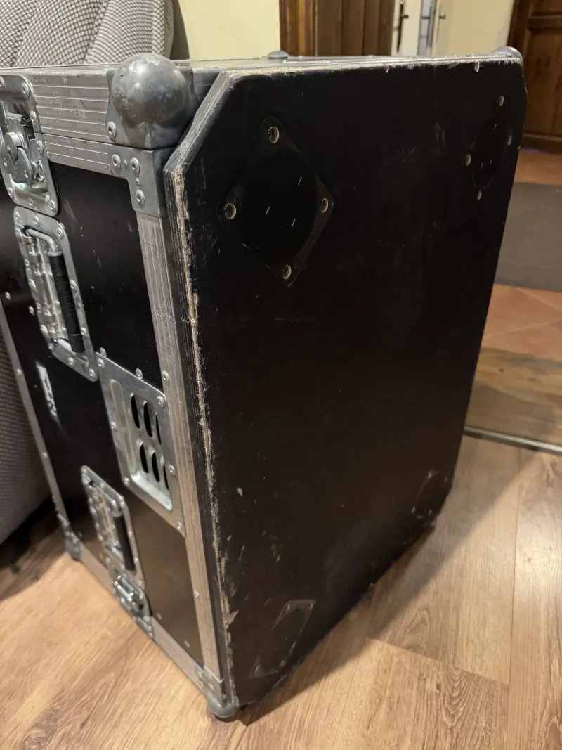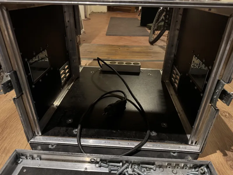 Nagyon masszív darab, Az alja megerősített, a kerekek arra szerelhetők. Csavarok is megvannak hozzá. Van benne egy 230V 4-es elosztó, kb. másfél méter gumikábellel.