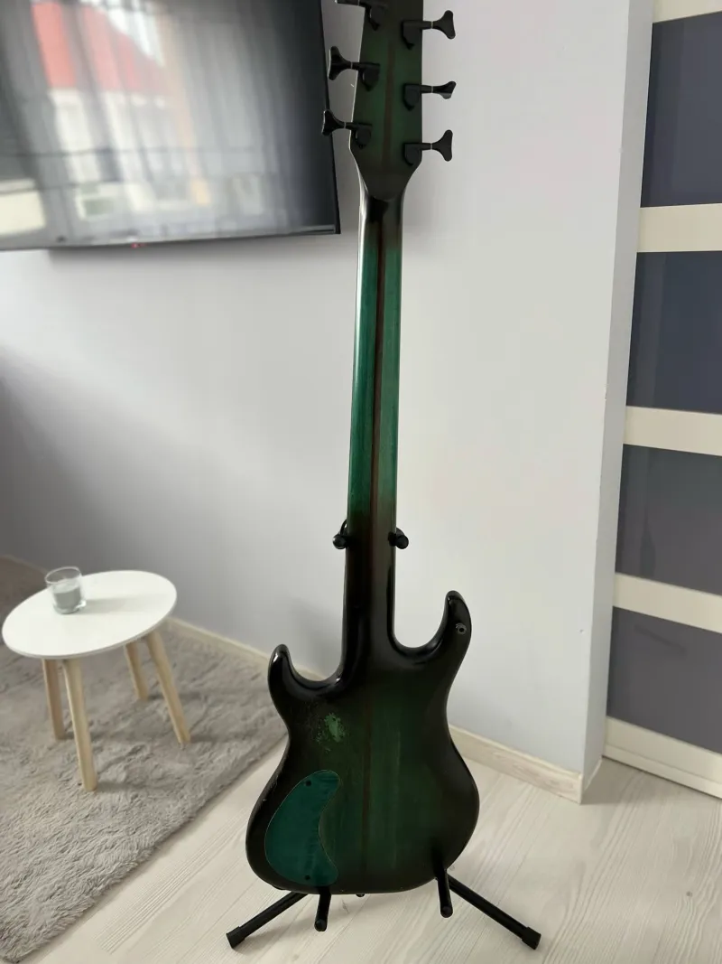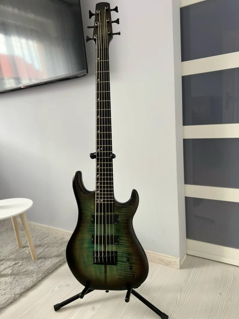 Michal Kováčik által készített 6 húros basszusgitár eladó.A modern, steril hangzást az aktív EMG hangszedők biztosítják. A tone potival és a hangszedők keverési arányával játszva akár agresszívebb preckósabb vagy funkysabb hangokat is ki lehet belőle hozni.