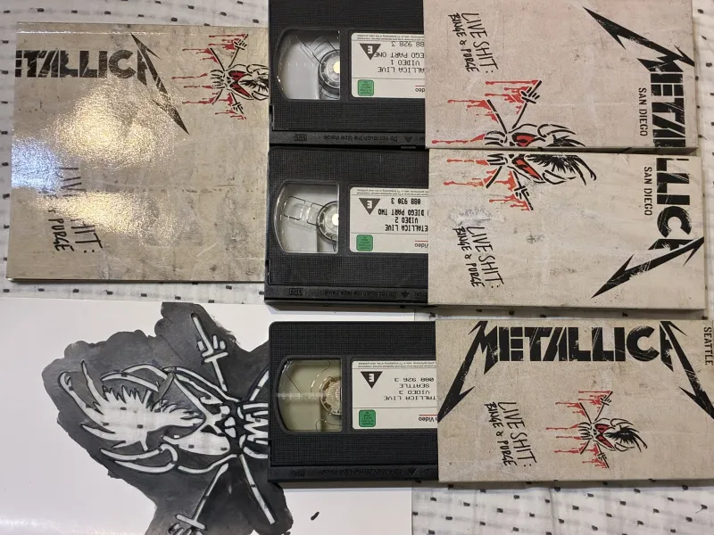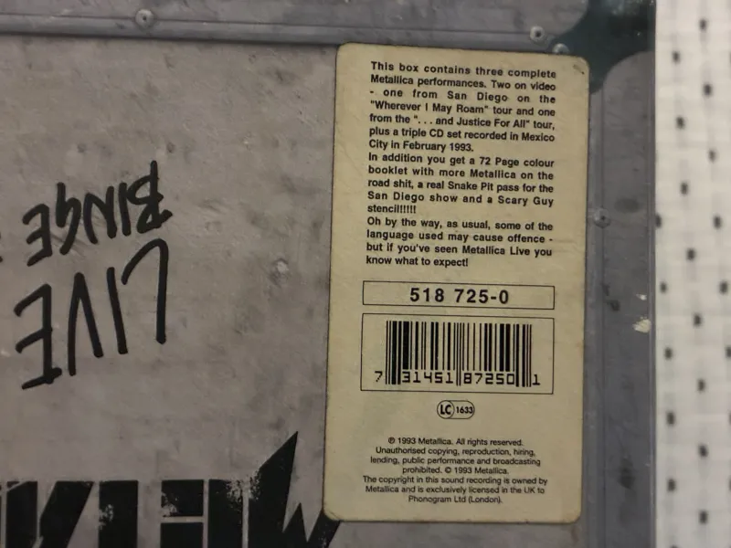 Eredeti 1993-as európai kiadás (Phonogram Ltd. London - UK). Komplett BOX (3 x CD, 3 x VHS kazetta, fotóalbum, zászló, festősablon). A doboz jó állapotú, a sarkainál van kisebb kopás. Sajnos az évtizedek alatt a belső szivacs elporladt, azt karbon hatású matricával pótoltam, de az eredetivel megegyező fekete szivacs is könnyen található hozzá. A festősablon egyszer már volt használva!Envío