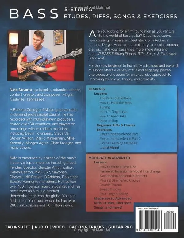 Eladó keveset használt, jó állapotú Nate Navarro 5-String bass angol nyelvű oktatókönyv.Extra letölthető hang- és videóanyagokkal a könyvön belüli QR kódok segítségével.