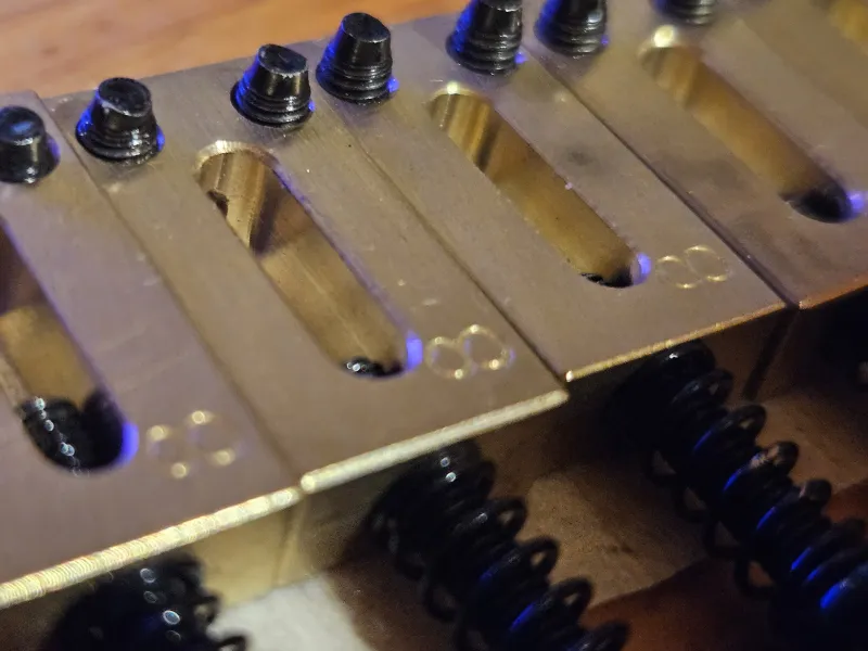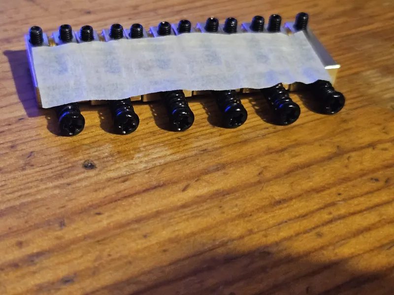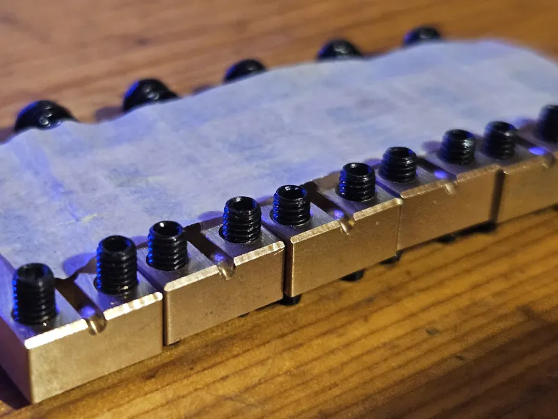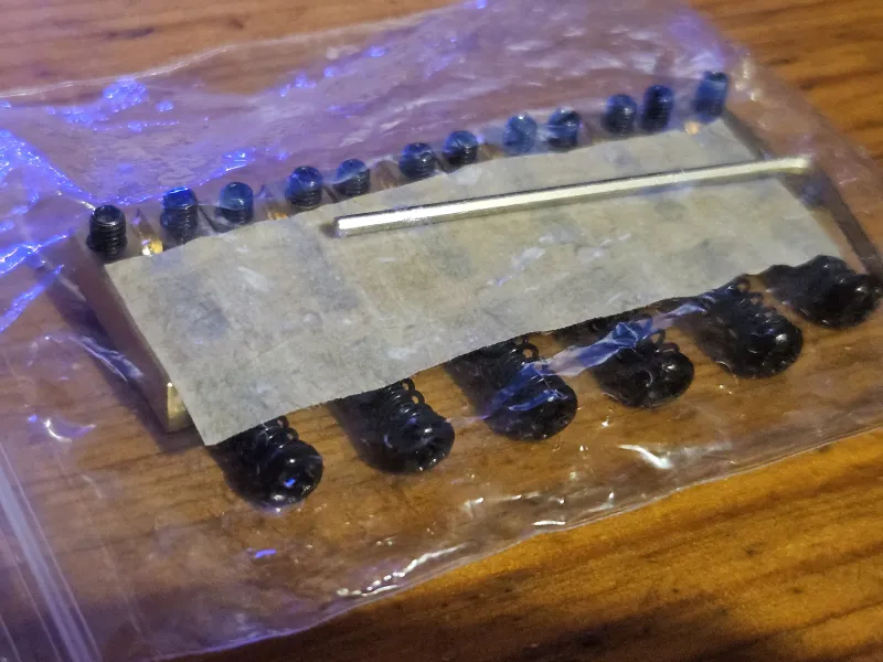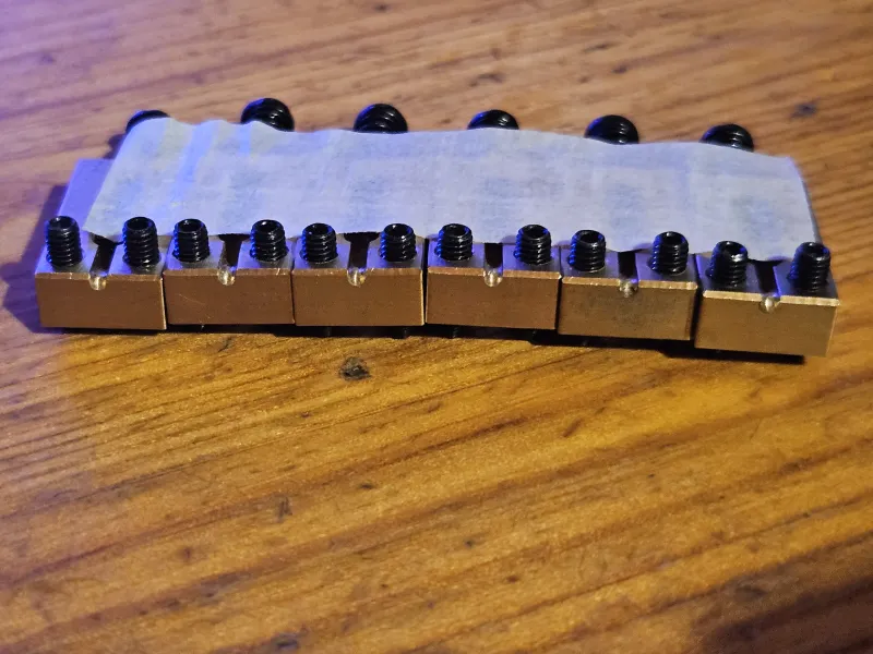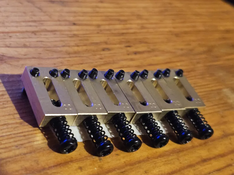 Sziasztok,Eladásra kínálok egy tömör sárgaréz baba szettet. Egy baba mérete (HxSzxM) 20 mm x 10,8 mm x 5.5 mm. Nekem egy fix hidas, 6 babás telecasteren volt rajta, kb 1 hétig. Nem stimmelt a méret, ráadásul a Chapman lekerekített fogólapos, így nekem ˝lecsúszott˝ a nyakról a húr alacsonyabb fekvésekben. Nem lekerekített fogólapos gitokra megfelelő lehet, de fentebb megtalálod a méreteket.