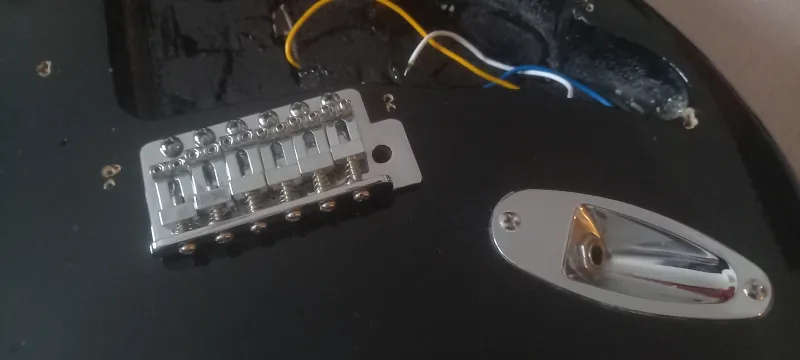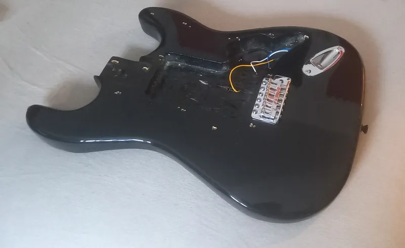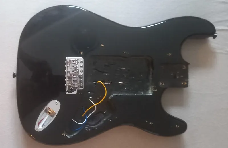 Fekete hársfa sztrato test (4,4 cm vastag) a képeken látható szerelékekkel együtt eladó.Egy Scorpion gitár teste lehetett, mert van hozzá egy skorpiós nyaklemez is, amit szintén hozzá tudok adni.