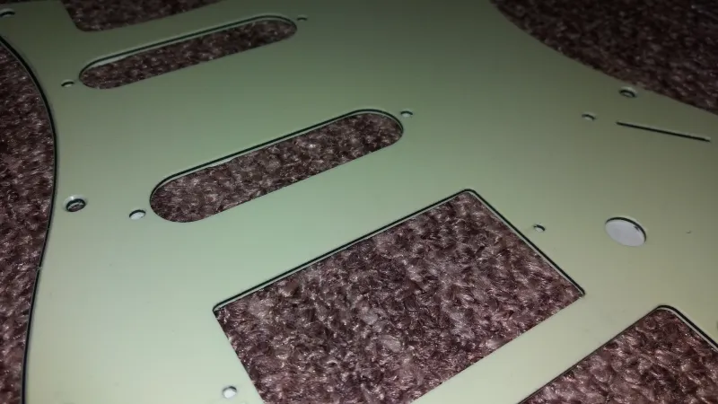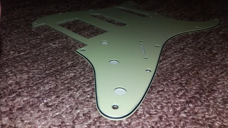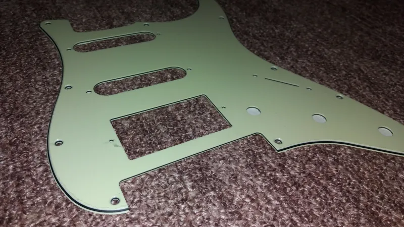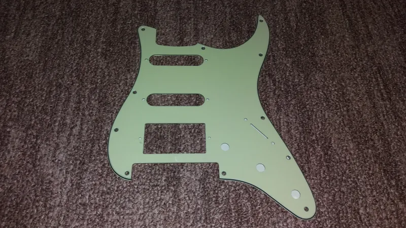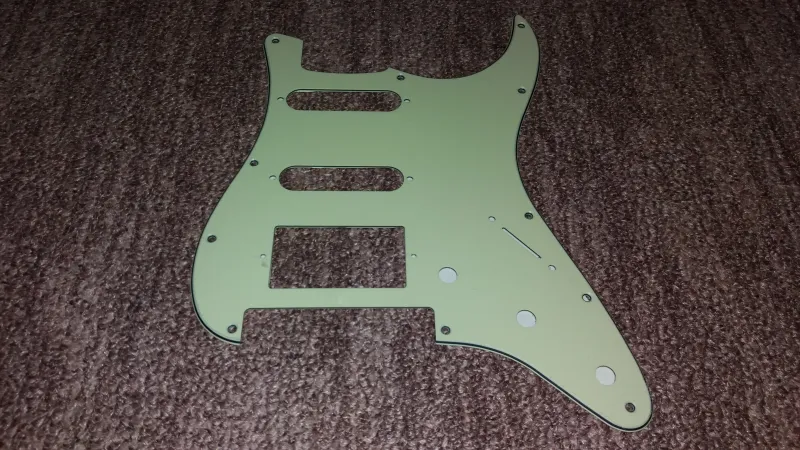 11 csavaros HSS vintage green koptatólap Floyd Rose hídkialakítású Stratocaster típusú elektromos gitárokhoz, elöl védőfóliával, hátul árnyékoló fóliával.Vadonat új, a koptatólap pontos méretezése, lyukkiosztása a képek között található.