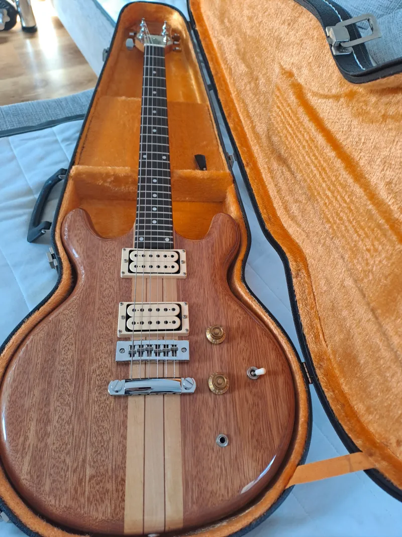 Ezt az elektromos gitárt az 1980-as években építette a japán Matsumoku, és tipikus 1980-as évekbeli dizájnnal rendelkezik, vastag, átmenő nyakkal és jó minőségű tömör natúr fával.