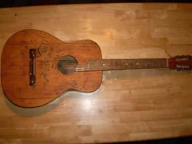 Se vende - SIN MARCA - vieja, golpeada, colgada en la pared, sirvió bien como decoración de habitación, de cuerdas de acero, alguien solía tocar la guitarra en ella...
