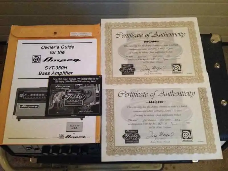 huendeskesAmbas unidades son series limitadas. Ampeg lo lanzó para su 50 aniversario en 1999. Se incluye el certificado de autenticidad, más el manual de usuario + ruedas.