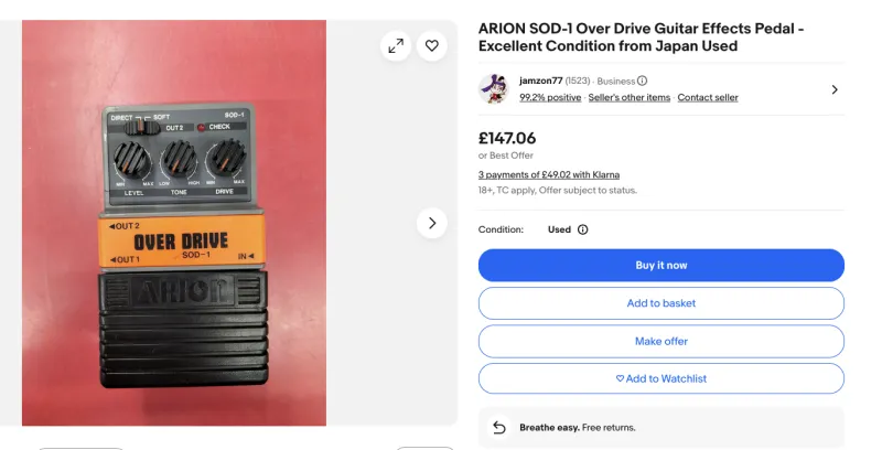NEM MŰKÖDŐ, JAVÍTÁSRA szoruló ARION SOD-1 gitár pedál (Made in Japan) hozzáértőnek eladó ! Ki/be kapcsol hibátlanul de néma marad mindkét állásban ! Sajnos az elem takaró csík nincs meg ! Aki fantáziát lát benne és sikerül életet lehelni bele az olcsón egy jó vintage effekthez juthat !Reseña relacionada