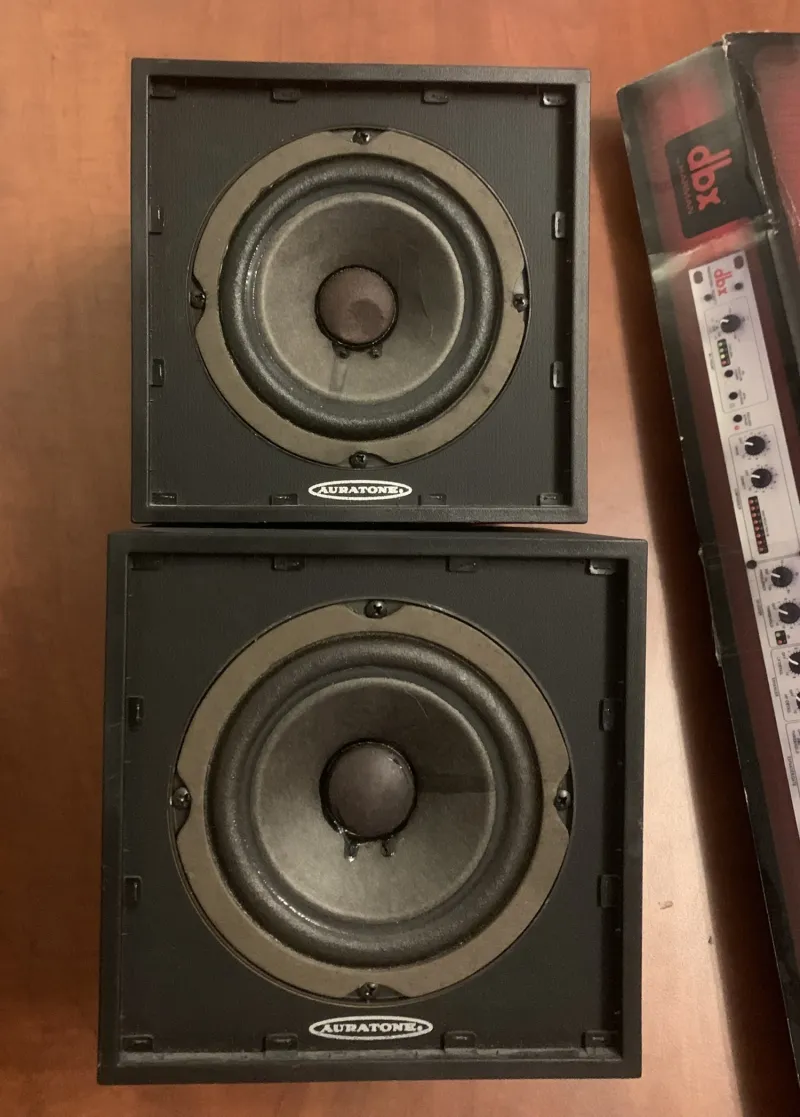 Eladó 1 pár korához képest kitűnő állapotban lévő Auratone 5C Super Sound Cube passzív stúdió hangfal. A 70-es, 80-as évek minden stúdiójban megtalálható, a korszak hangzását meghatározó referencia monitor hangfal. Az egyik tetején van némi sérülés, de a hangját ez nem befolyásolja. Egy felszámolt Nashville-i stúdióból vásároltam néhány éve, azonban most a saját stúdióm felszámolása miatt váltak eladóvá.A sorozatszámok egymáshoz igen közel állnak, azaz a két hangfal azonos gyártásból származnik, így hangbeli eltérés nincs közöttük. A sorozatszámokat és a matricák részeit érthető okokból rejtettem el.