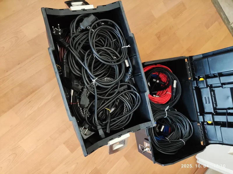Rengeteg XLR és Jack kábel egy gurulós kofferben