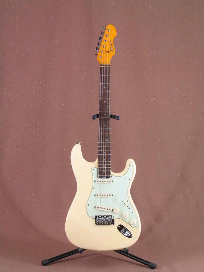 huendeskesBlade Texas Classic Stratocaster en blanco antiguo. Se han realizado todos los desarrollos que Fender no se atrevió a hacer... unión mástil-cuerpo adelgazada, alma ajustable desde el cuerpo sin desmontar el mástil, puente fundido de alta calidad y selletas de puente endurecidas. Sonido Strat impecable de un instrumento bien ajustable y manejable. Vale la pena bajar para una prueba A/B con tu propio Strat... el Blade podría no quedarse aquí.