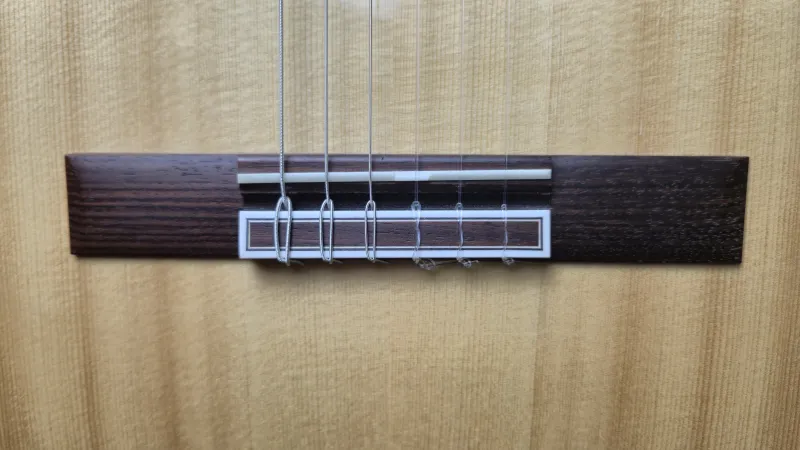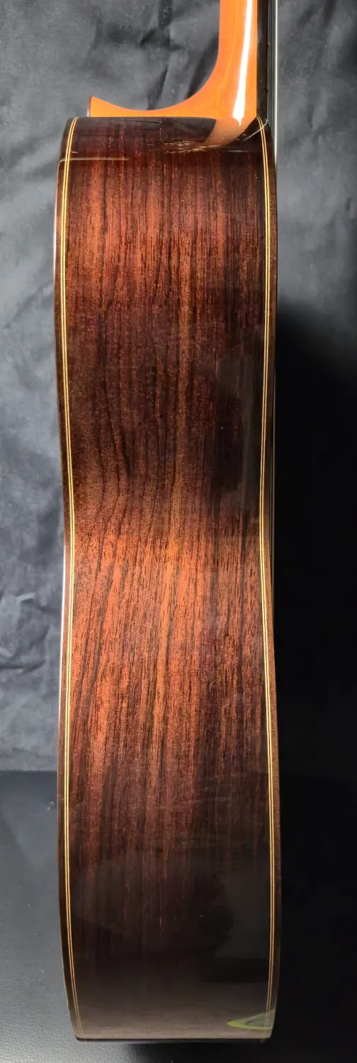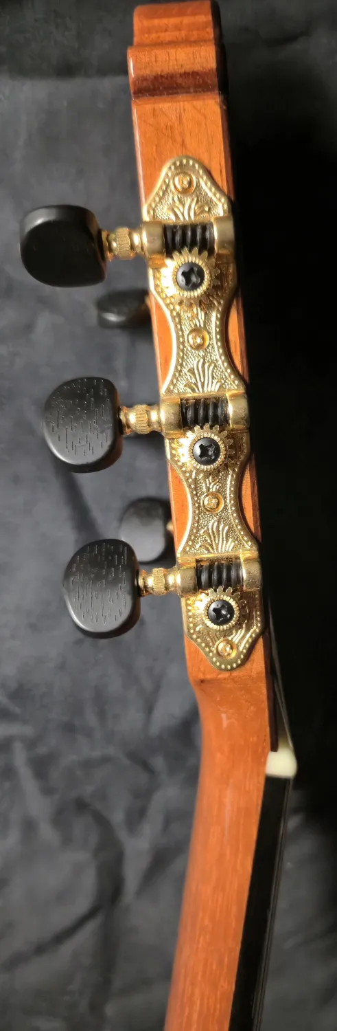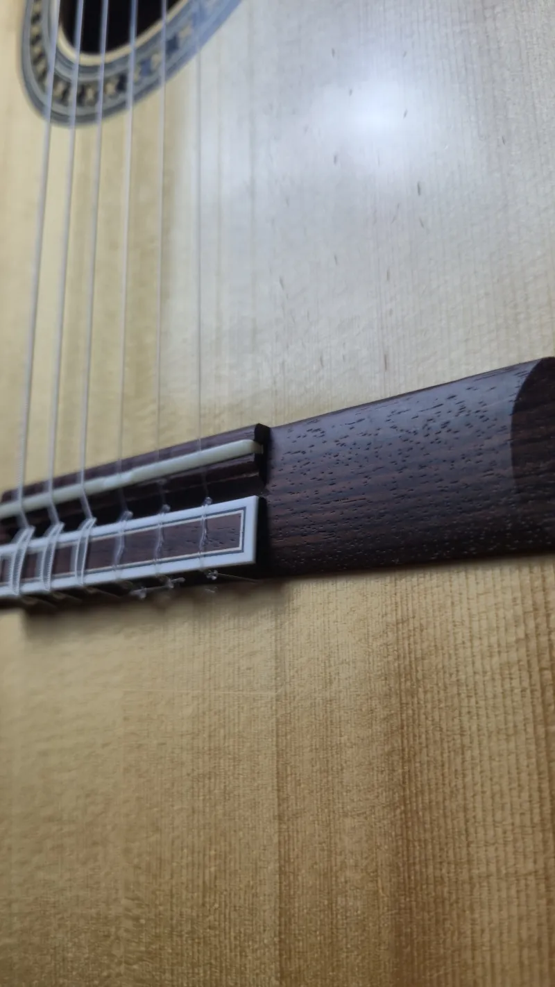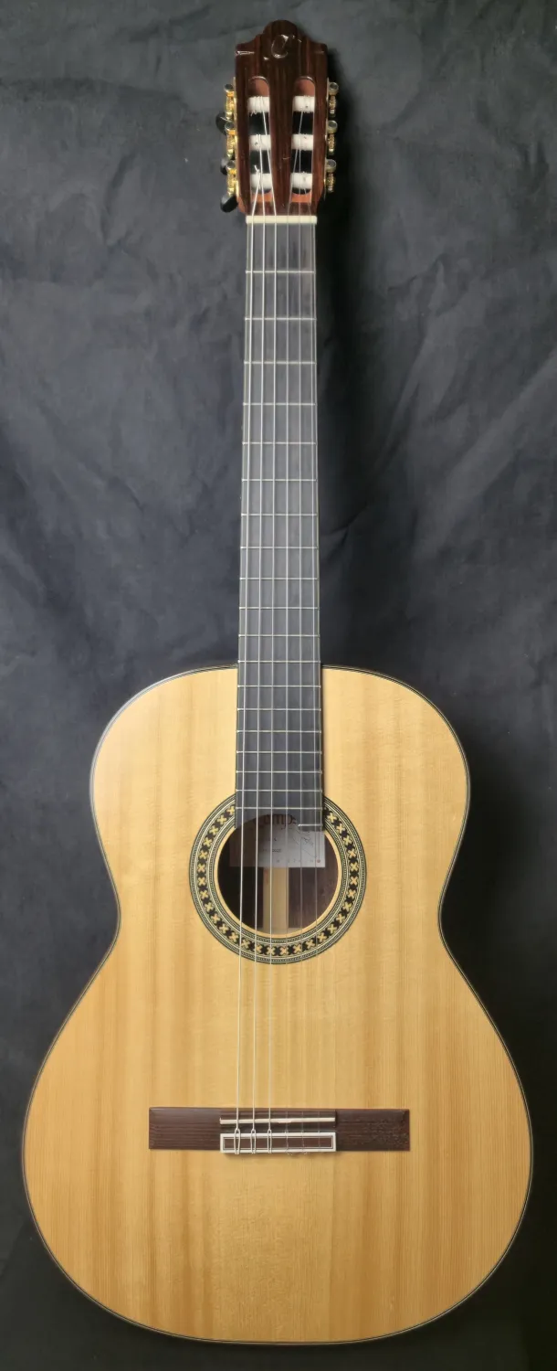 Eladó Hermanos Camps GL-18-S klasszikus mestergitárom. A Hermanos Camps GL-18-S a spanyol manufaktúra egyik legkülönlegesebb mesterhangszere ebben a kategóriában. Ez a mestergitár a legmagasabb minőségű tömör faanyagokból készült. A legjobb hangzás érdekében francia polítúrozású ˝shell-lakk˝ fényezést használnak a tetőn, amelyek köszönhetően minden regiszterben rendkívül nyitott és dinamikus a gitár hangzása. A hangindítás elképesztően gyors, és a játszhatóság komfortja is rendkívüli. A cédrus nyakba egy karbon merevítőrudat építettek a stabilitás érdekében és emiatt a nyakmerevítés nélküli gitárokhoz képest a nyakprofilt is vékonyabbra lehetett készíteni. A GL-18-S gitár teteje tömör AA osztályú fenyő, a hát és káva AA osztályú tömör indiai paliszander. A cédrus nyak ébenfa fogólapot kapott, a csont felsőnyereg szélessége 52mm, a húrhossz 650mm. A test mélysége a felső vállnál 93 mm, az alsó vállnál 98 mm. A felső- és alsónyereg csontból készült.Envío