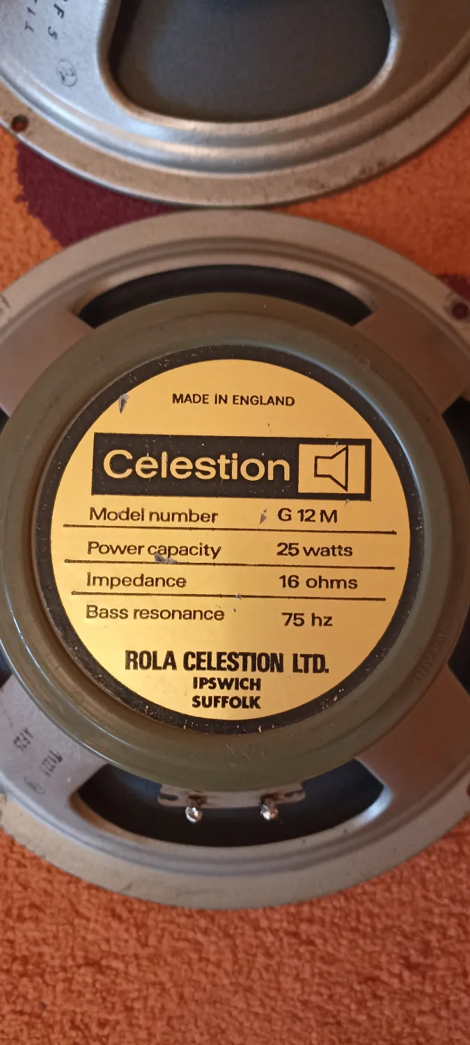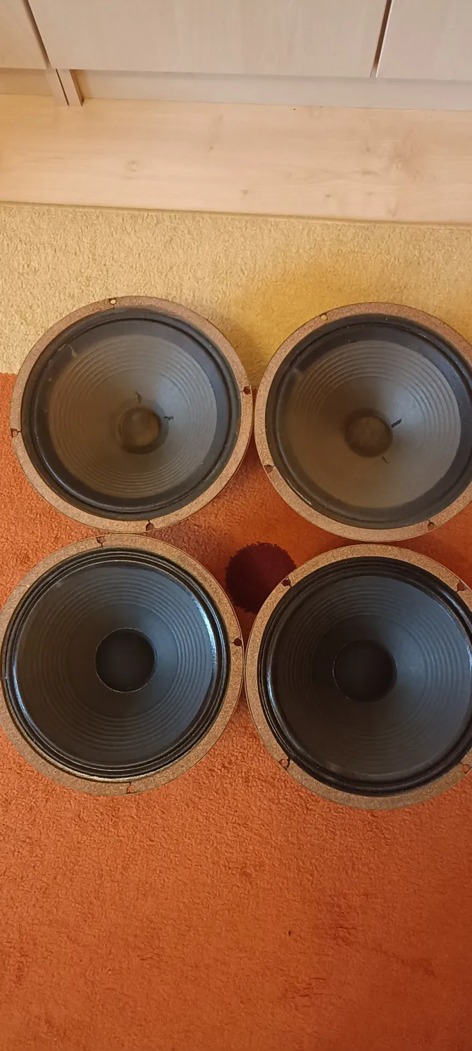 Eladó 4db Celestion T1221 legendás Pulsonic membrános greenback 75Hz hangszóró. 2db eredeti 102/03 membrán 1973 február 5, 2db recone 1973 január 25.A T1221 volt a Marshall 4x12-es szólógitár-ládák gyári hangszórója az 1960-as évek közepétől egészen az 1980-as évek elejéig. Sok más márka is használta, mint például a Laney és az Orange. Mint ilyen, számtalan klasszikus rock albumon hallható, és számtalan legendás gitáros is használta.Reseña relacionada