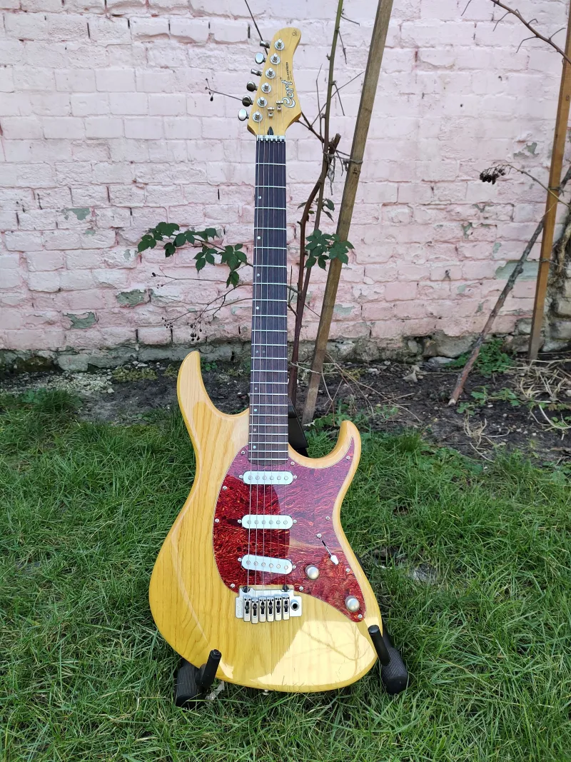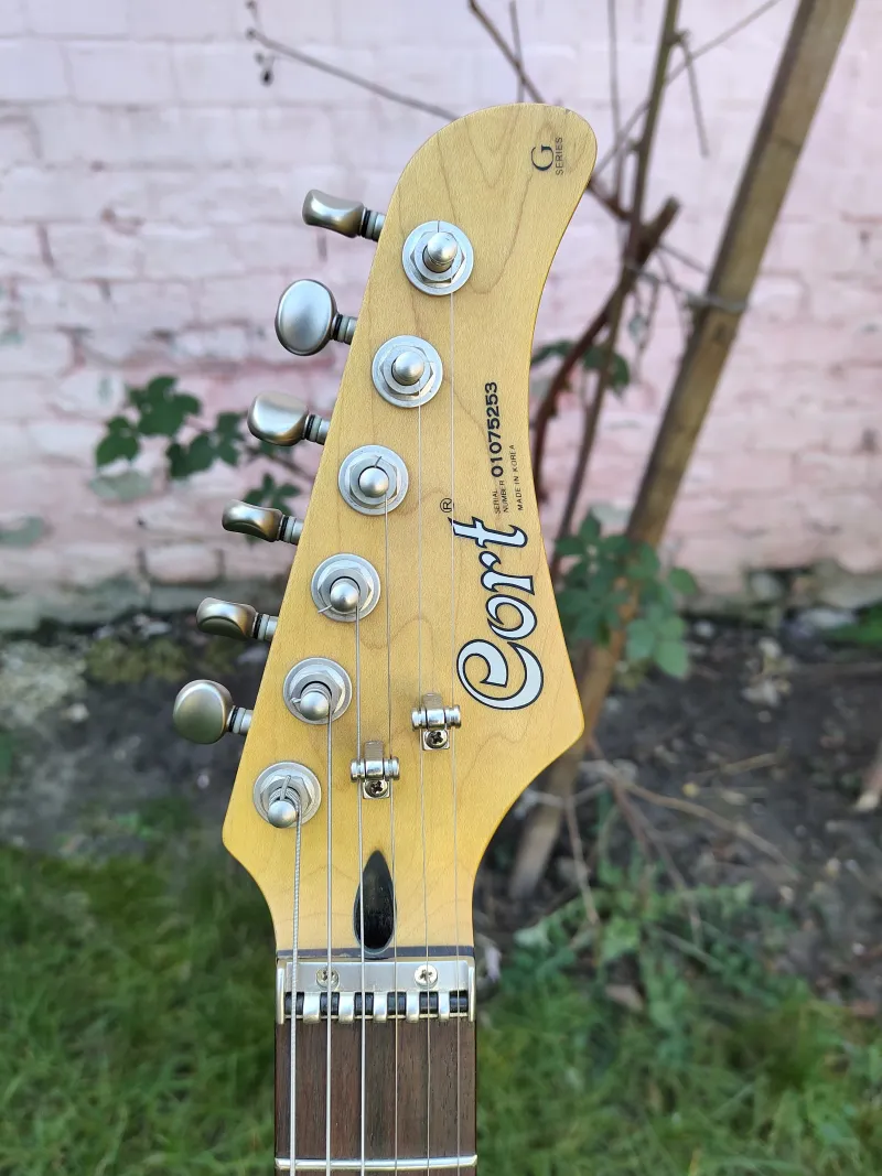 A test mocsári kőrisből készült, a nyak juhar, a fogólap rózsafa. A Wilkinson híd és a görgös felsőnyereg gyári felszereltség. Ezt még Koreában gyártották 2001-ben, amikor a Cort nagyon bizonyítani akart, hogy van olyan jó, mint a japánok.