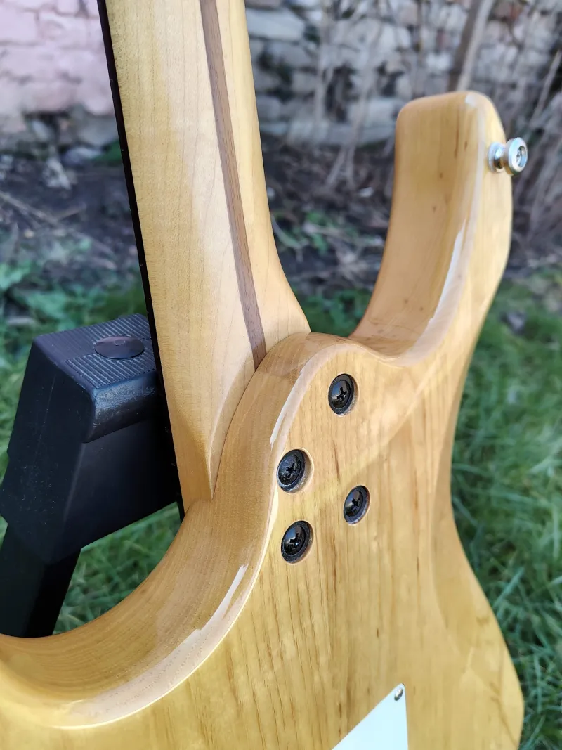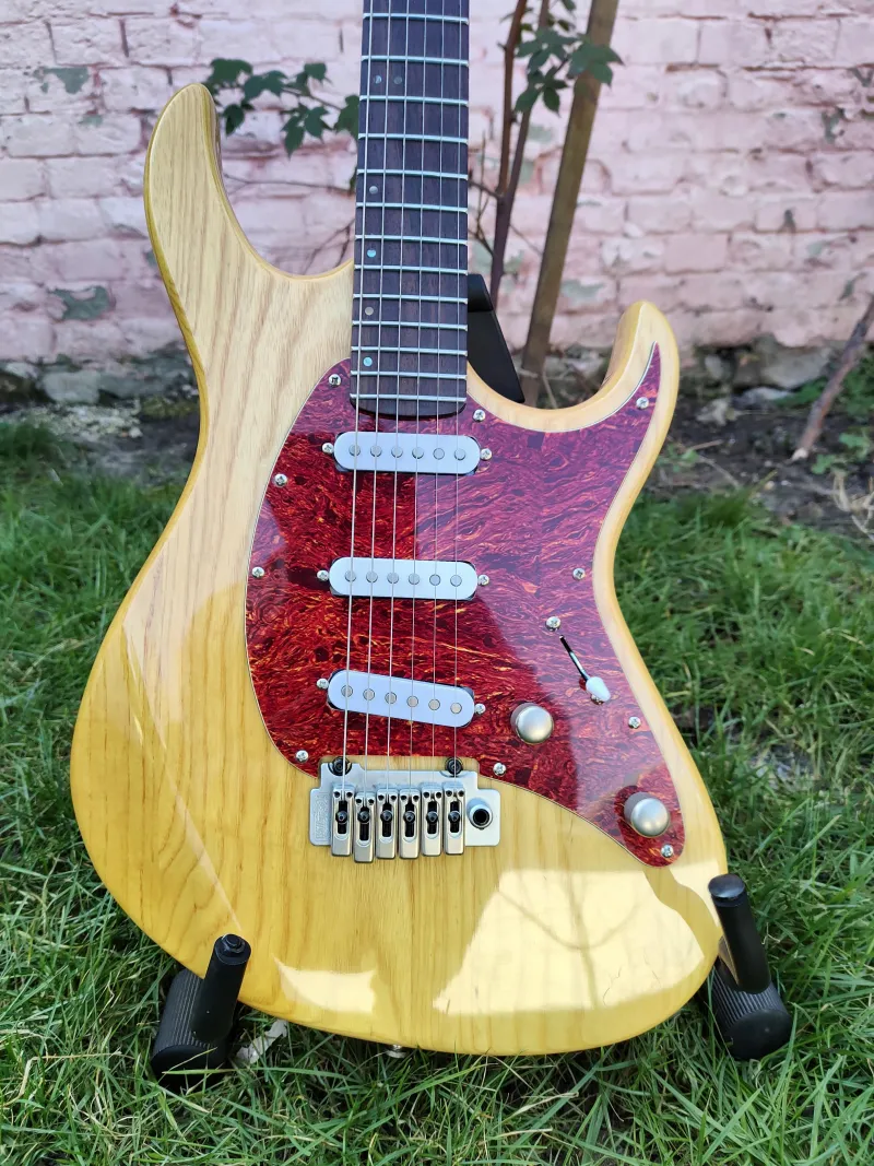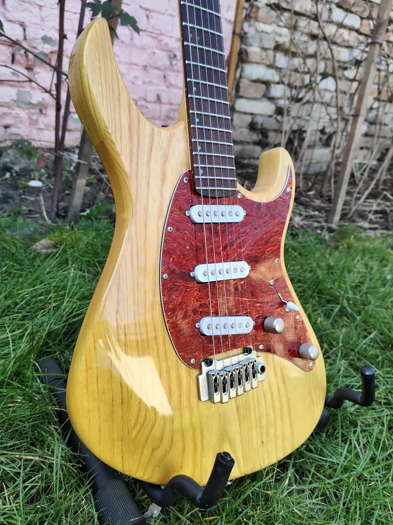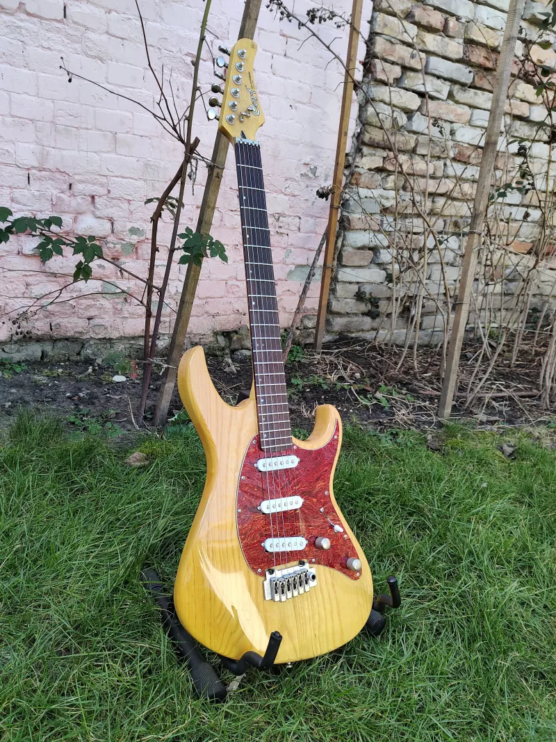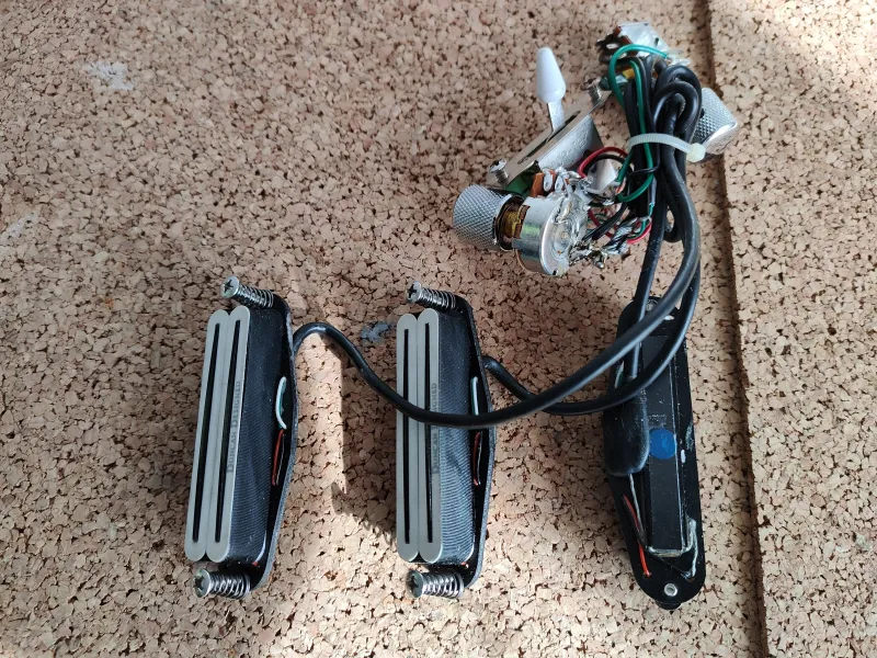 A gyári pickupjai helyett raktam bele Fleor enyhén túltekert Alnico staggered single coil pickupokat (6,5K-6K-6K), ettől igazi strat hangja lett. Az elektronika ürege rézfóliával lett árnyékolva, hogy minél kevesebb zajt szedjen össze. Természetesen jár hozzá a gyári elektronikája is a felezhető Duncan Designed Hot Rails pickupokkal, szívesen beleszerelem, ha ezzel szeretné a vevő, csak pár perces művelet.