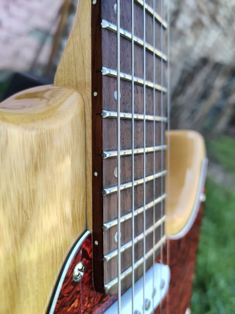 A gitár be van állítva friss 9-42-es húrokkal, alacsony húrmagasság mellett sincs zörgés, hiszen profin lett újrabundozva, a nyak pedig nyílegyenes. Ha nem megfelelő a húrvastagság, akkor hozott húrral szívesen áthúrozom és beállítom, hogy arra se kelljen költeni. Sőt, itthon is van bontatlan 10-46-os és 10-52-es készletem, ha olyan kellene.