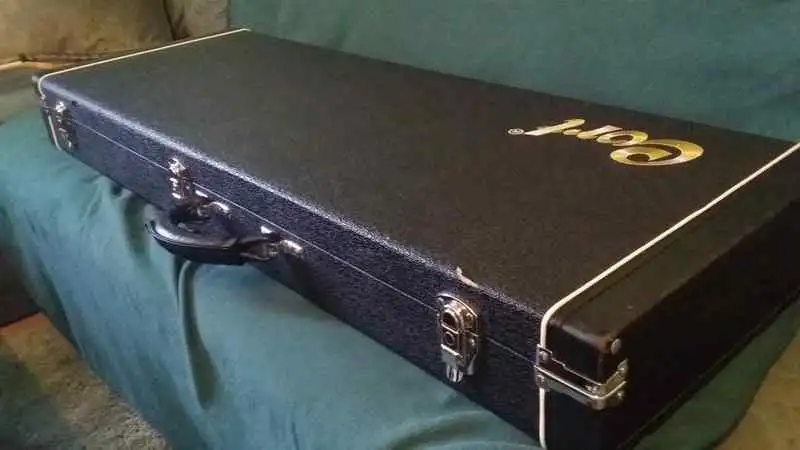 El precio incluye el estuche rígido original de la guitarra, que presenta algunas pequeñas marcas de uso. El brazo de trémolo también está incluido.